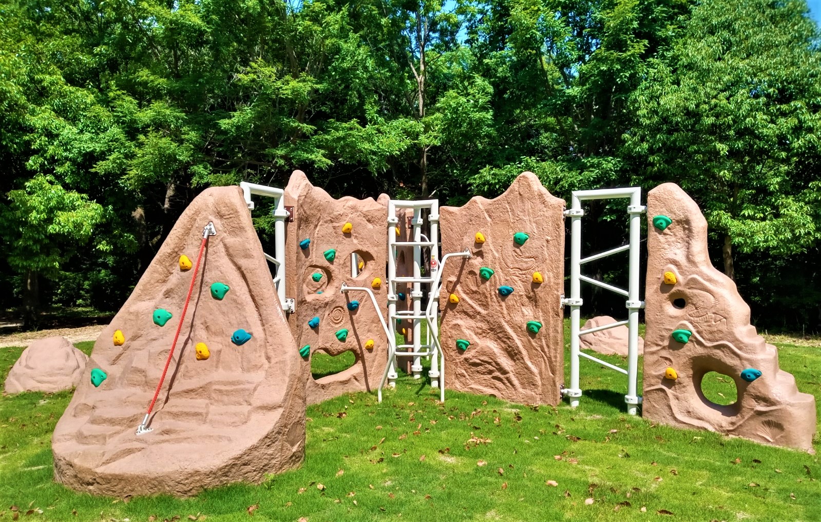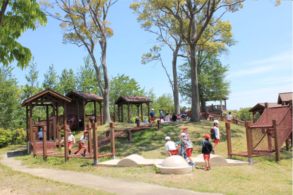 ピクニック園地 ネット遊具や滑り台などがある芝生広場は、遠足やピクニックでのお弁当を食べるには最適の場所です。 令和4年6月にはクライミング遊具(クリフクライマー)が加わりました。 利用時間 公園の開園時間 利用料金 無料 利用方法 自由使用