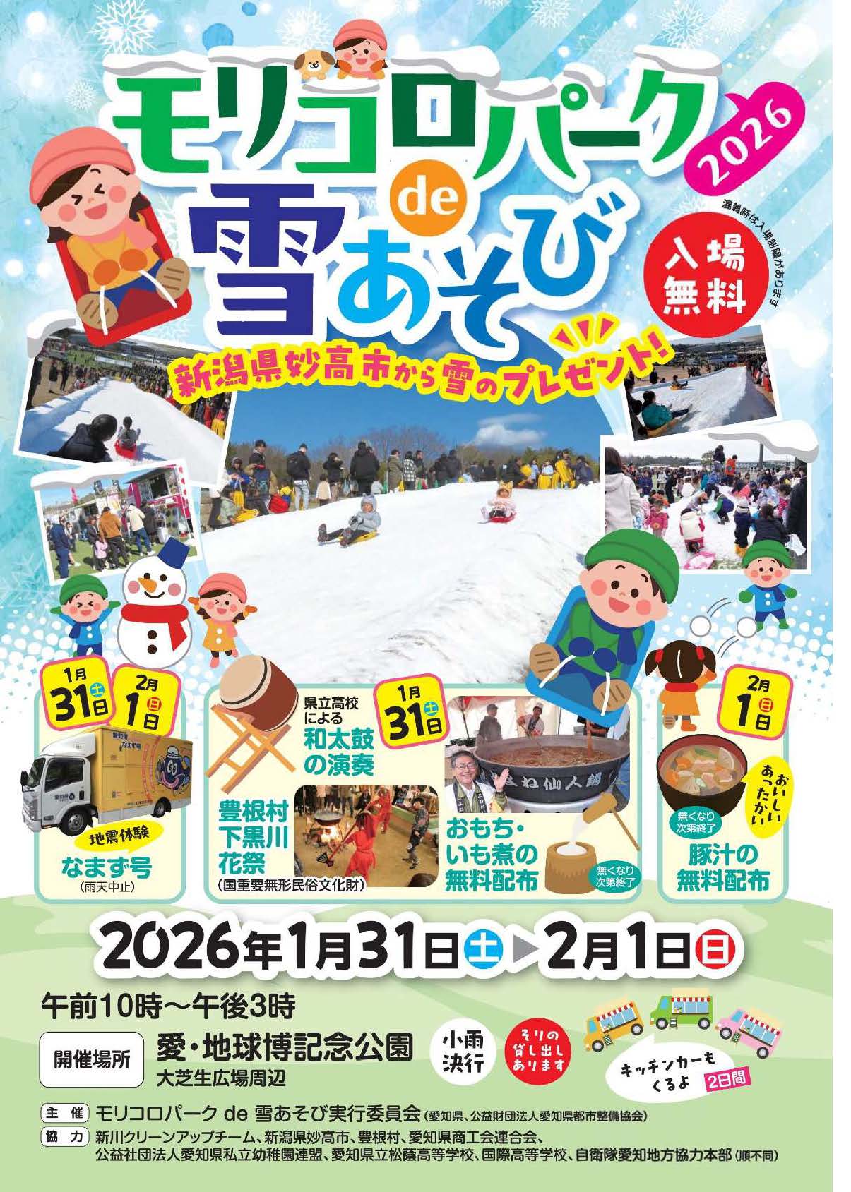 今年も開催!大芝生広場に新潟県妙高市からプレゼントされた雪を使った「雪あそびエリア」が出現!