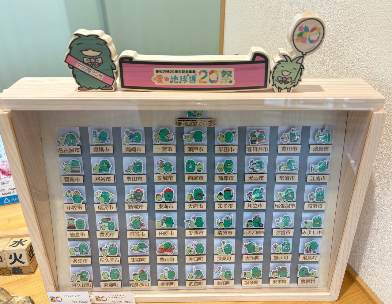 「愛地球博20祭 54市町村ご当地モリゾー・キッコロピンバッジ」は