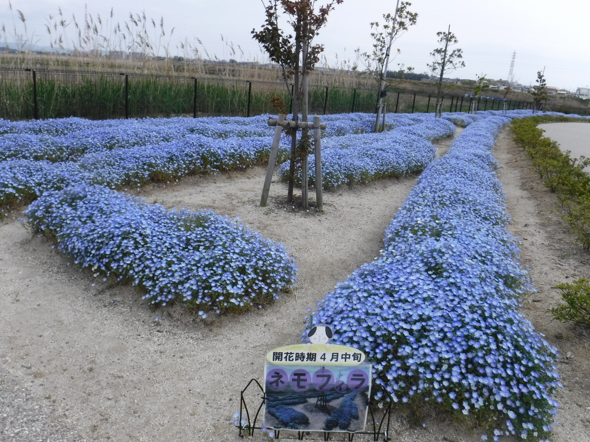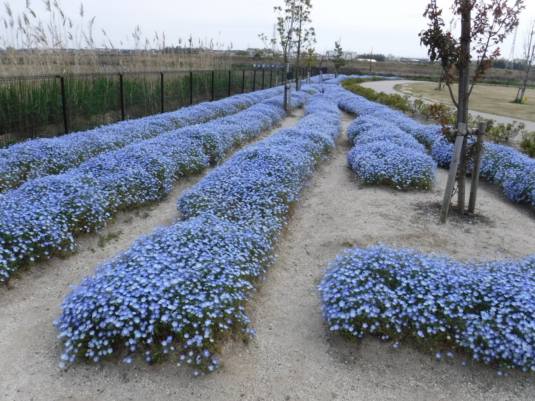 シャーレーポピーとネモヒラのお花畑の様子【自然ふれあい生態園(安城側)】