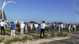 ▼自然ふれあい生態園(安城市)において東端町内会はじめ地元企業の社員 総数1,200名が参加した様子。