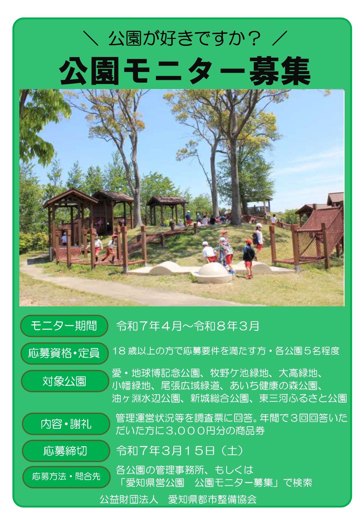 【お知らせ】牧野ケ池緑地 令和7年度公園モニター募集