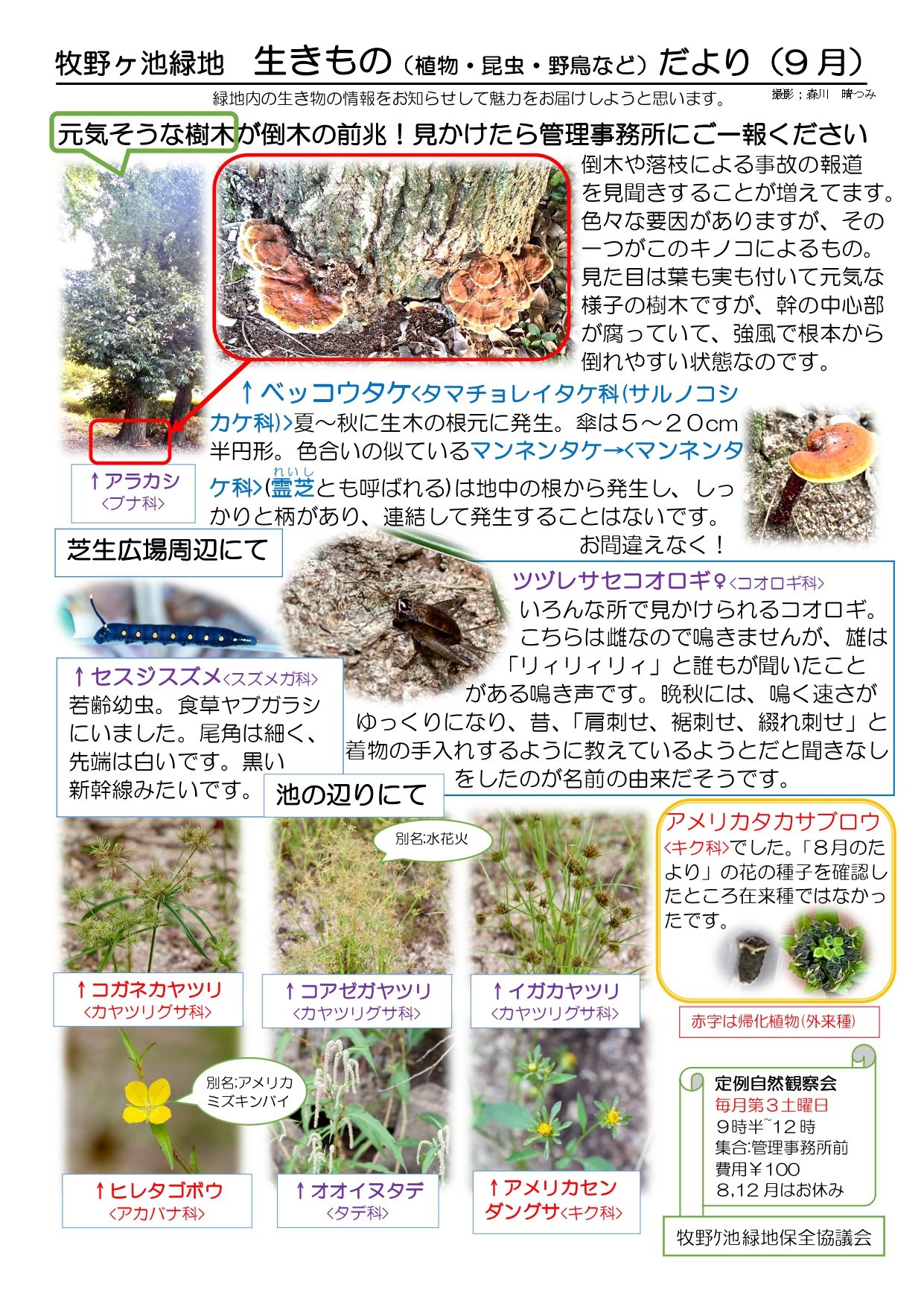 牧野ケ池緑地 生きものだより(令和6年9月)が届きました。