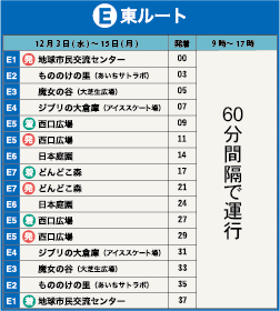期間中、園内無料バスの運行ダイヤが以下のとおり変更となります。