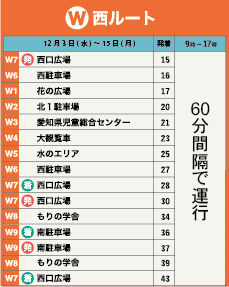 西ルート 9:15(始発)~17:15(最終出発)