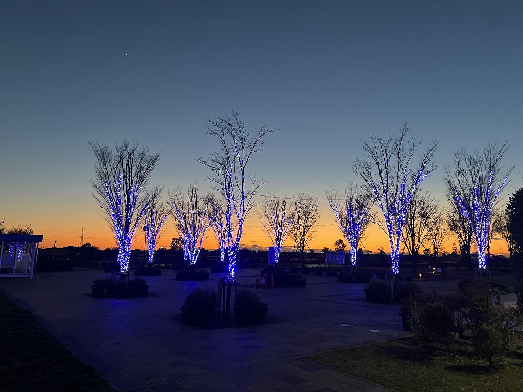 イルミネーションは1月13日まで 更新日 2025/01/11 自然ふれあい生態園(安城市)のイルミネーションは1月13日で今年度は終了です。少し日が長くなりましたね。夕焼けの中、点灯するイルミネーションをお届けします。