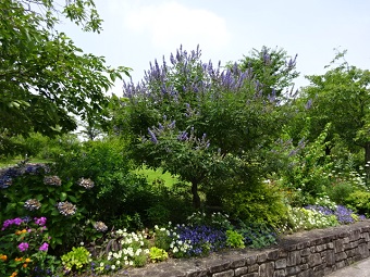 夏に涼しい色合いの「セイヨウニンジンボク」が咲いています。