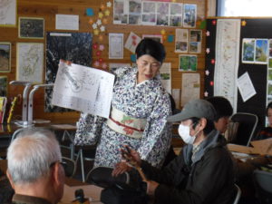 ▼一緒に歌って楽しんでいる様子      ▼一緒にウクレレ体験の様子