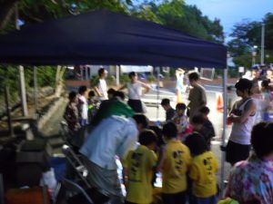 ☟夜7時には人が集まり始めました。    ☟ピカピカ金魚大人気。すべてなくなりました。