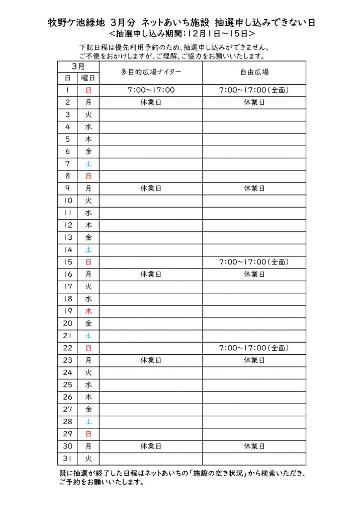 【お知らせ】令和8年3月分 ネットあいち施設 抽選申込みできない日(牧野ケ池緑地)