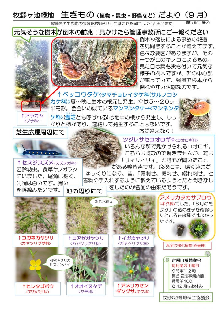 【お知らせ】牧野ケ池緑地 生きものだより(令和6年9月) 更新日 2024/10/23 牧野ケ池緑地 生きものだより(令和6年9月)が届きました。 こちらは、牧野ケ池緑地保全協議会の方々により作成されています。 牧野ケ池緑地の自然の魅力を再発見してみましょう。