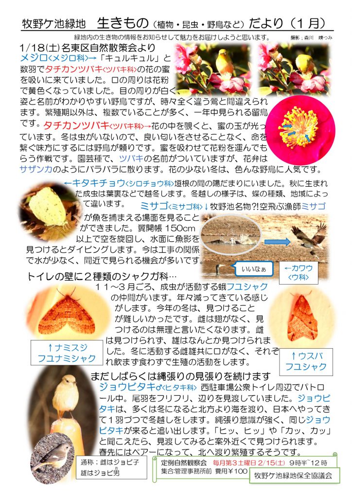 【お知らせ】牧野ケ池緑地 生きものだより(令和7年1月) 更新日 2025/02/06 牧野ケ池緑地 生きものだより(令和7年1月)が届きました。 こちらは、牧野ケ池緑地保全協議会の方々により作成されています。 冬の牧野ケ池緑地に自然を探しに来ませんか。