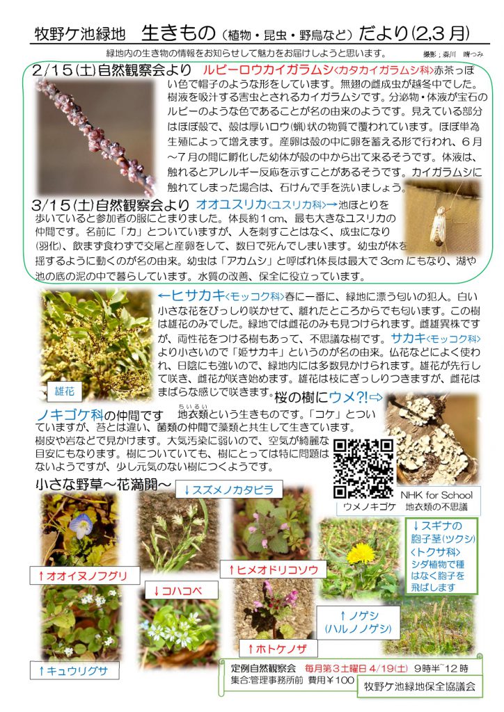 【お知らせ】牧野ケ池緑地 生きものだより(令和7年2、3月) 更新日 2025/04/18 牧野ケ池緑地 生きものだより(令和7年2、3月)が届きました。 こちらは、牧野ケ池緑地保全協議会の方々により作成されています。