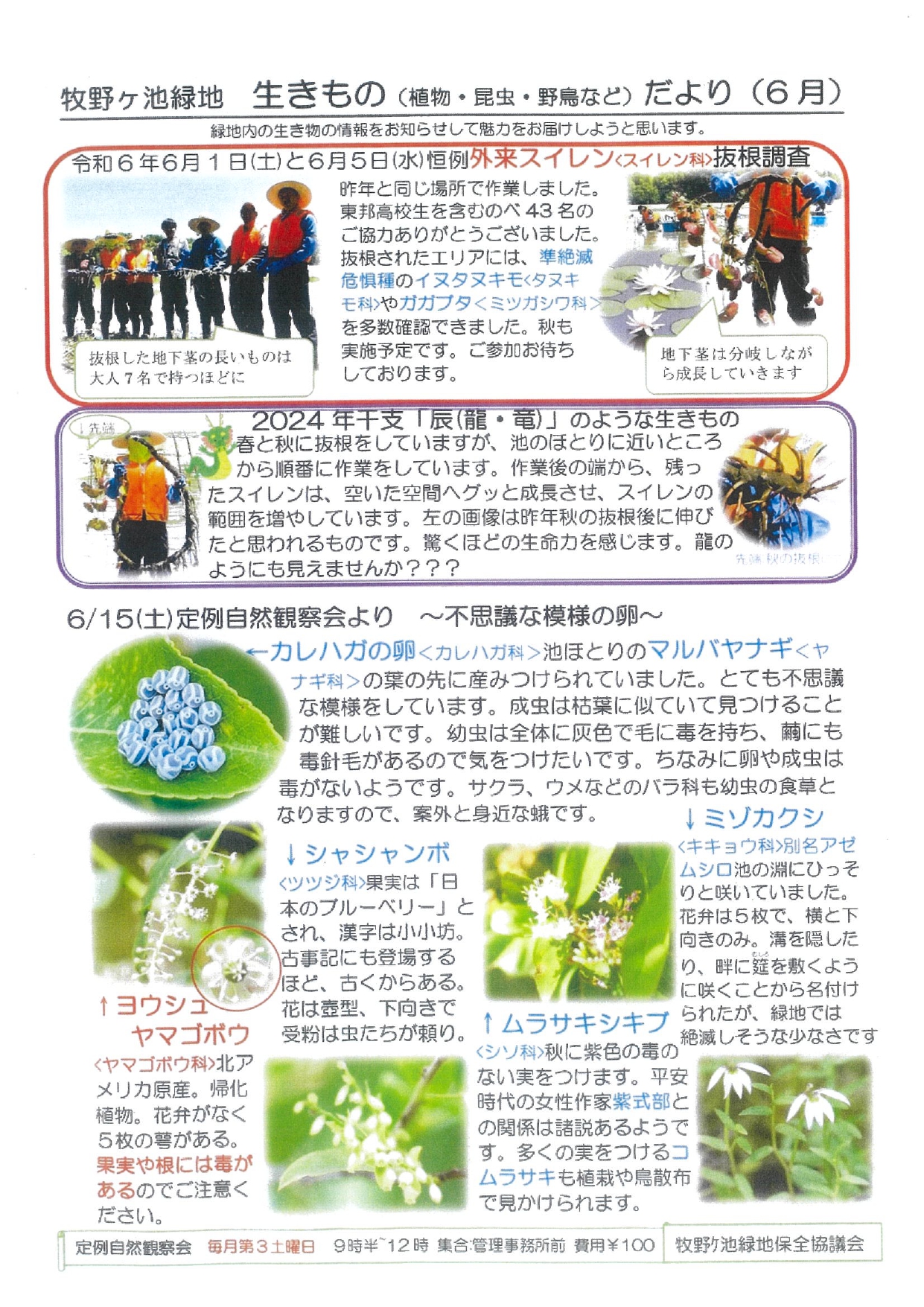 牧野ケ池緑地 生きものだより(令和6年6月)が届きました。