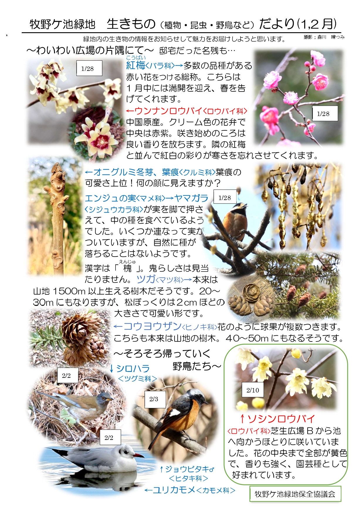 牧野ケ池緑地 生きものだより(令和8年1、2月)が届きました。