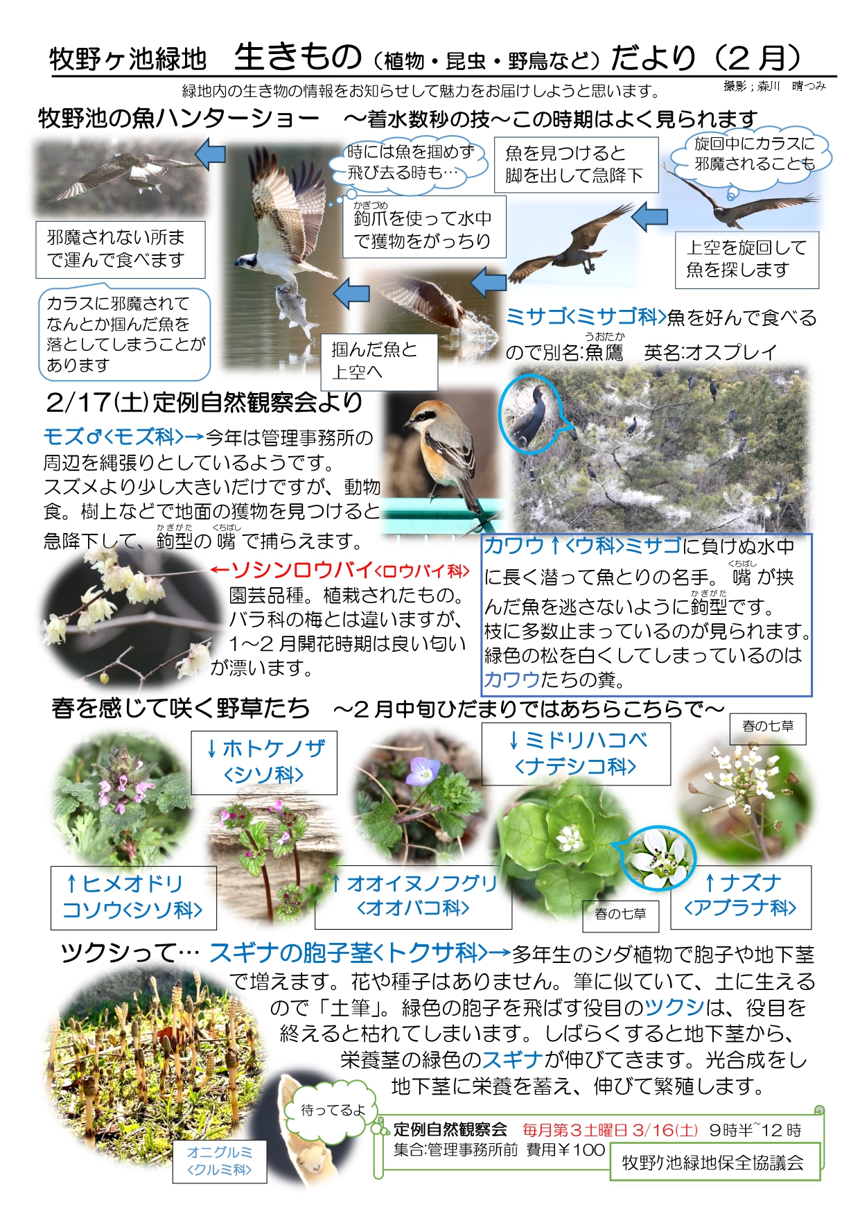【お知らせ】牧野ケ池緑地生きものだより(令和6年2月) 更新日 2024/03/05 牧野ケ池緑地生き物だより(令和6年2月)が届きました。 こちらは、牧野ケ池緑地保全協議会の方々により作成されています。 牧野ケ池緑地の自然の魅力を再発見してみませんか。