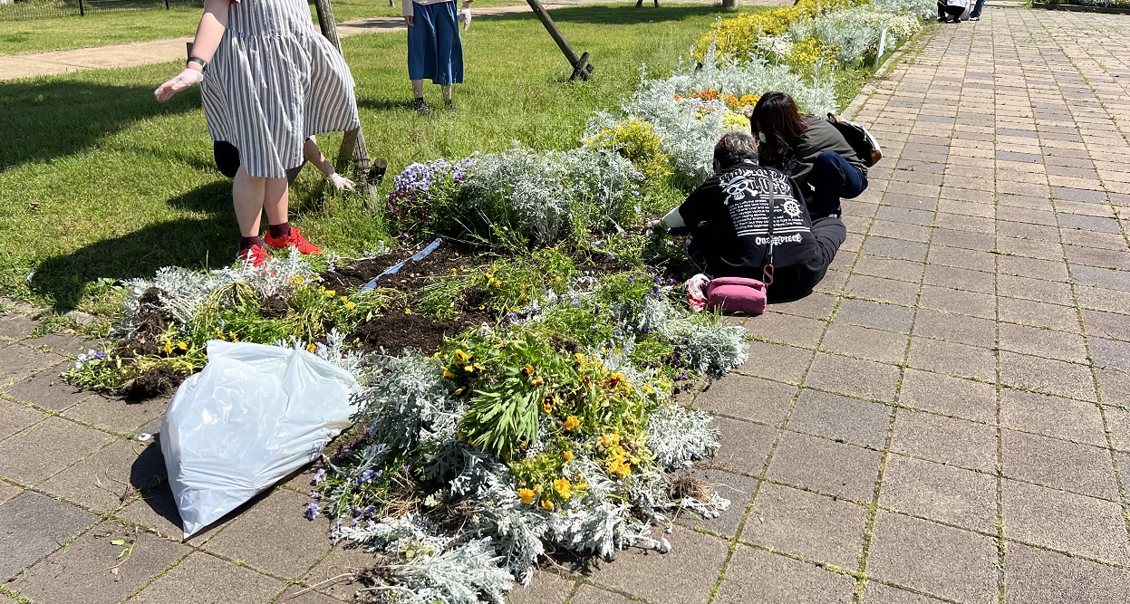 5月17日 ガイアさんが自然ふれあい生態の花壇の除草作業を行いました。ありがとうございました。