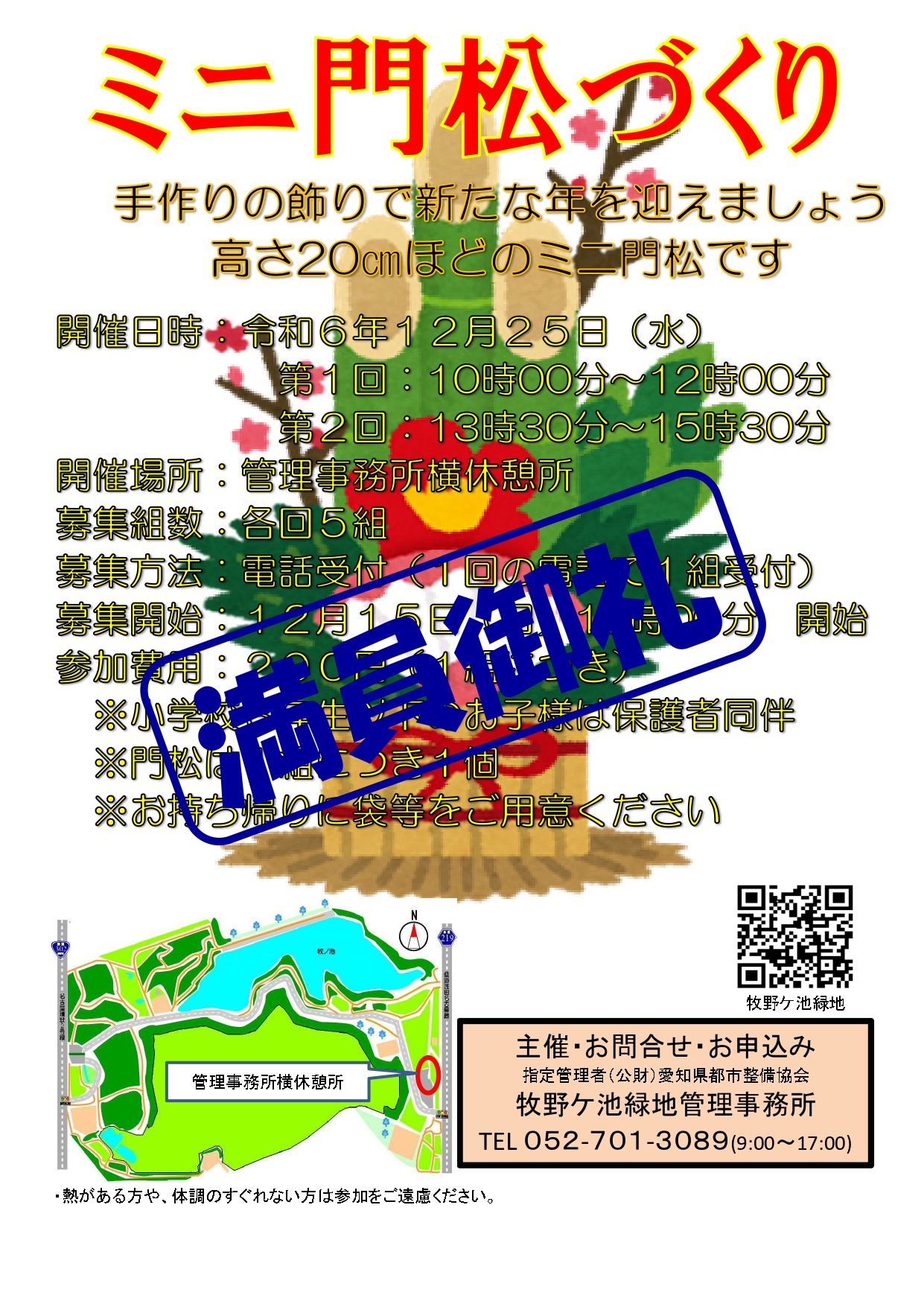令和6年12月25日(水)開催予定の「ミニ門松づくり」は募集定員に達しました。