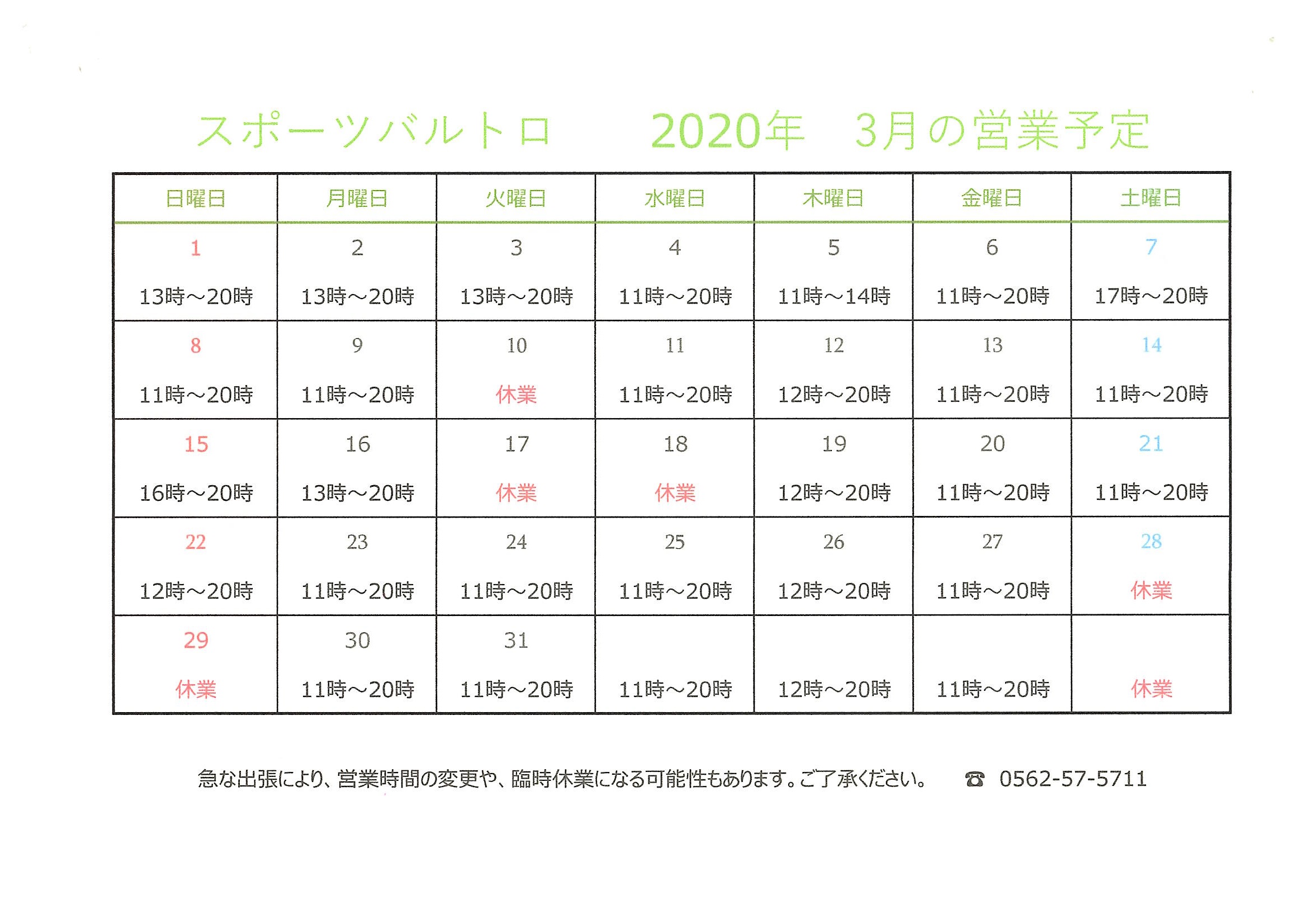 休業日のお知らせ