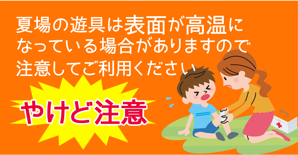 夏場は遊具が熱を持ち、やけどする可能性があります!