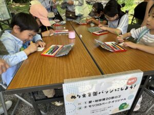昨年、大変ご好評いただいたモリゾー・キッコロのぬりえをし、それを缶バッジにする無料のワークショップ「オリジナル缶バッジをつくろう!」を今年も開催します。今回は「開園20周年ロゴマーク」や「新たに描き下ろしたモリゾーとキッコロのイラストぬりえ」をご用意します。各日500名分の缶バッジをご用意しております。(お一人様1個まで。無くなり次第終了します。)