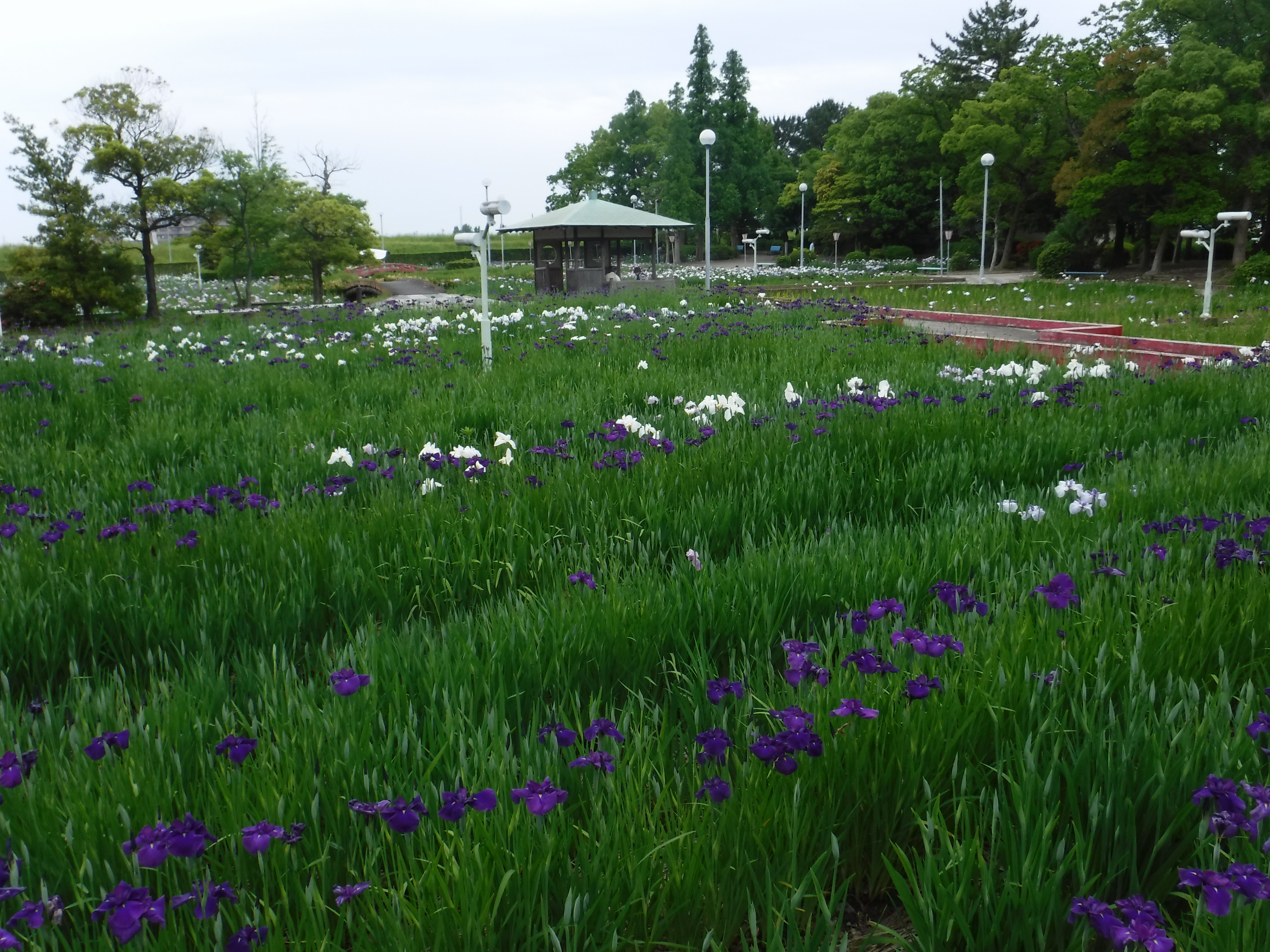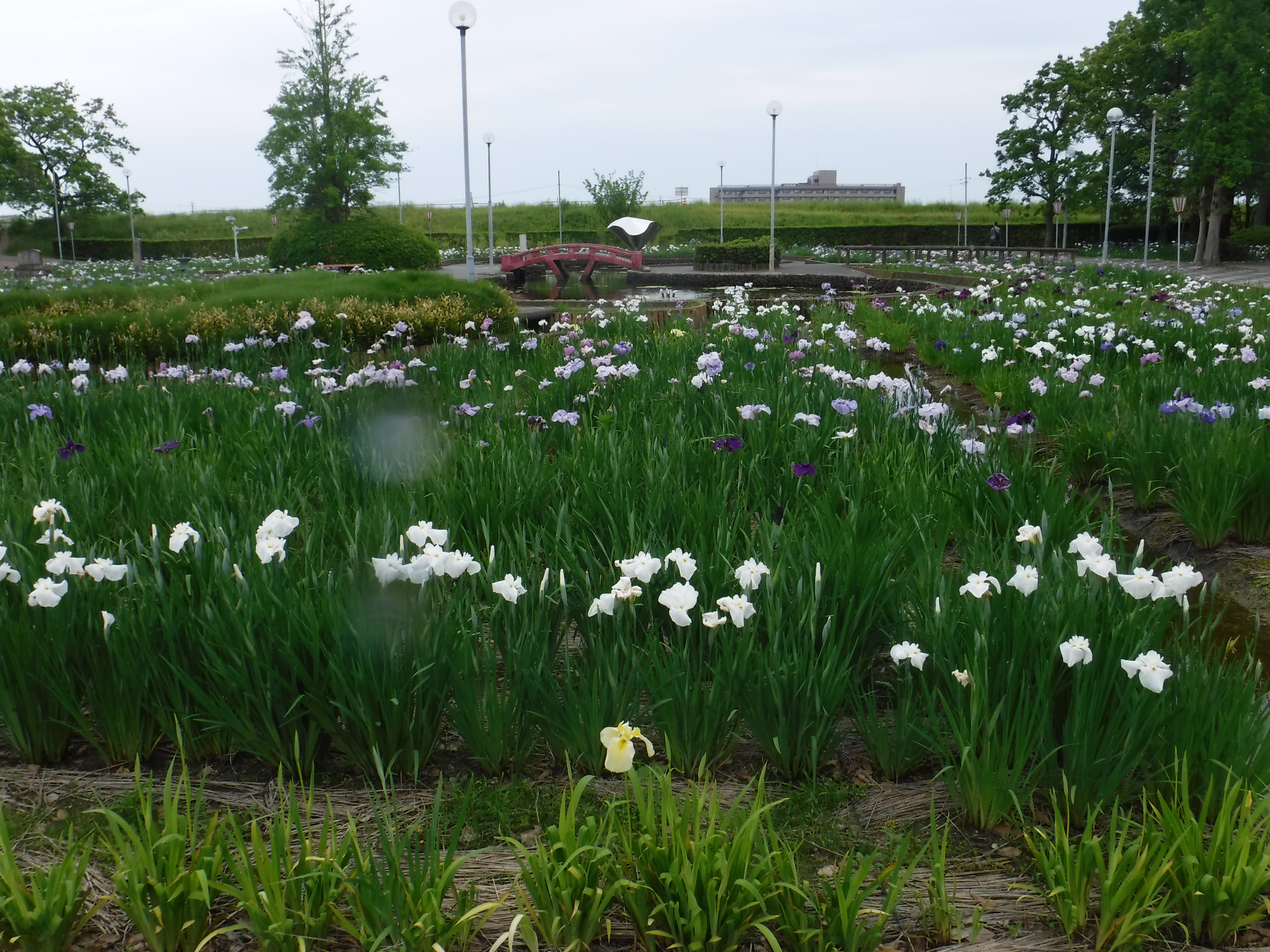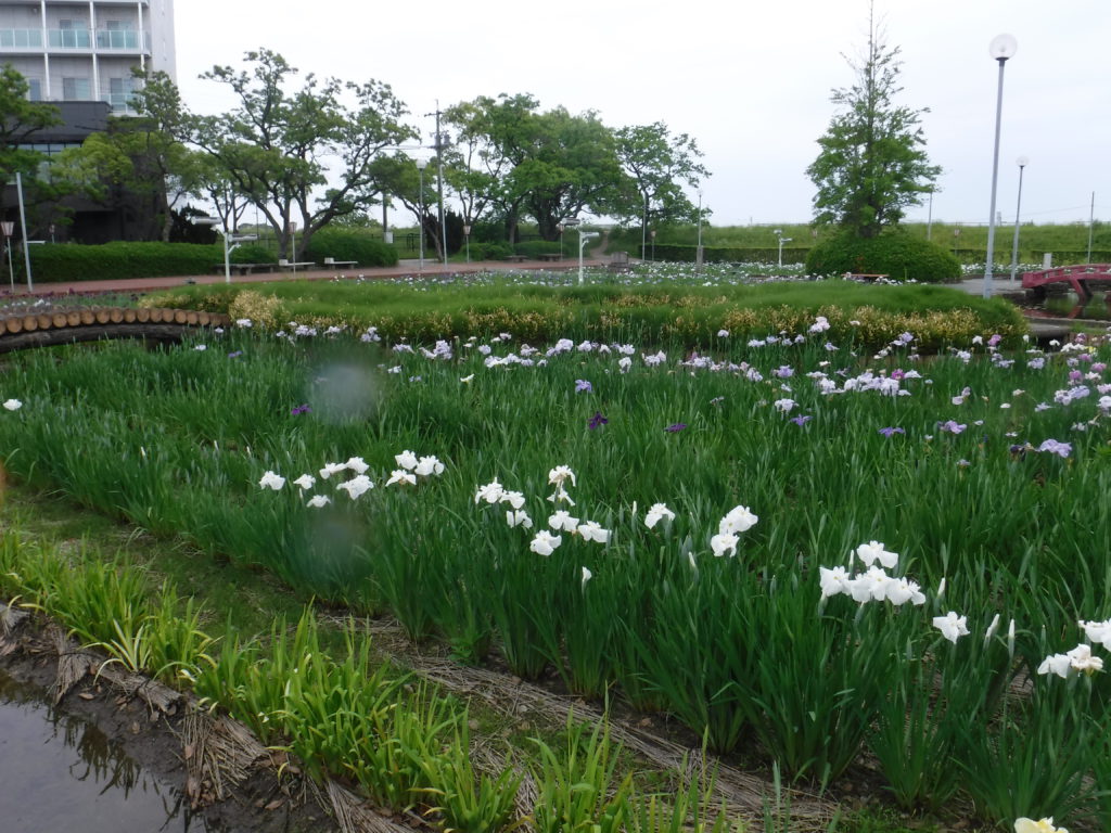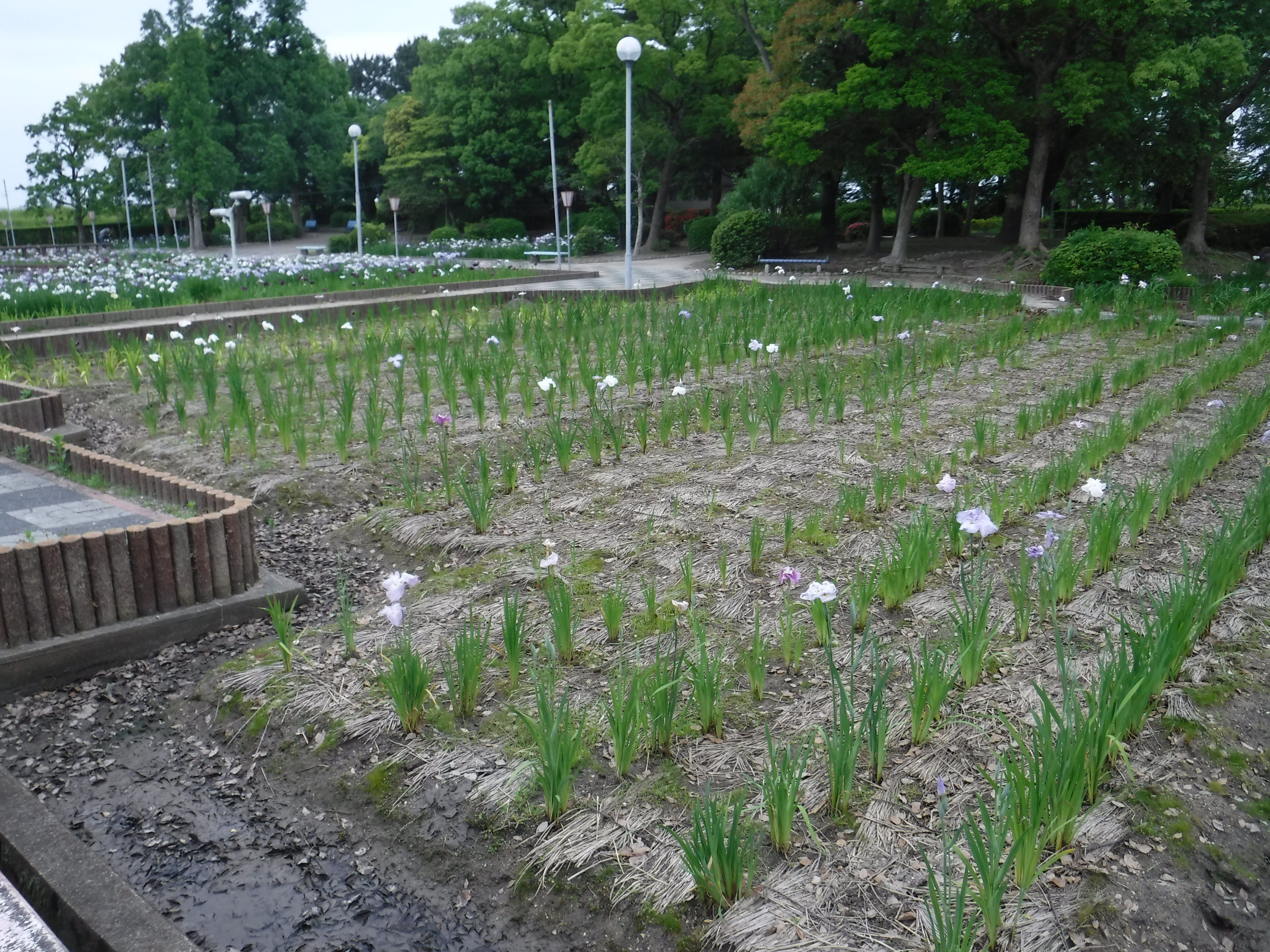 お隣の碧南市の公園(油ヶ渕遊園地の花しょうぶ園)の花しょうぶの開花の状況です。
