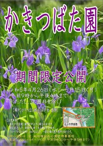 5月17日(金)までかきつばた池(もりの学舎 西側)にて期間限定開放