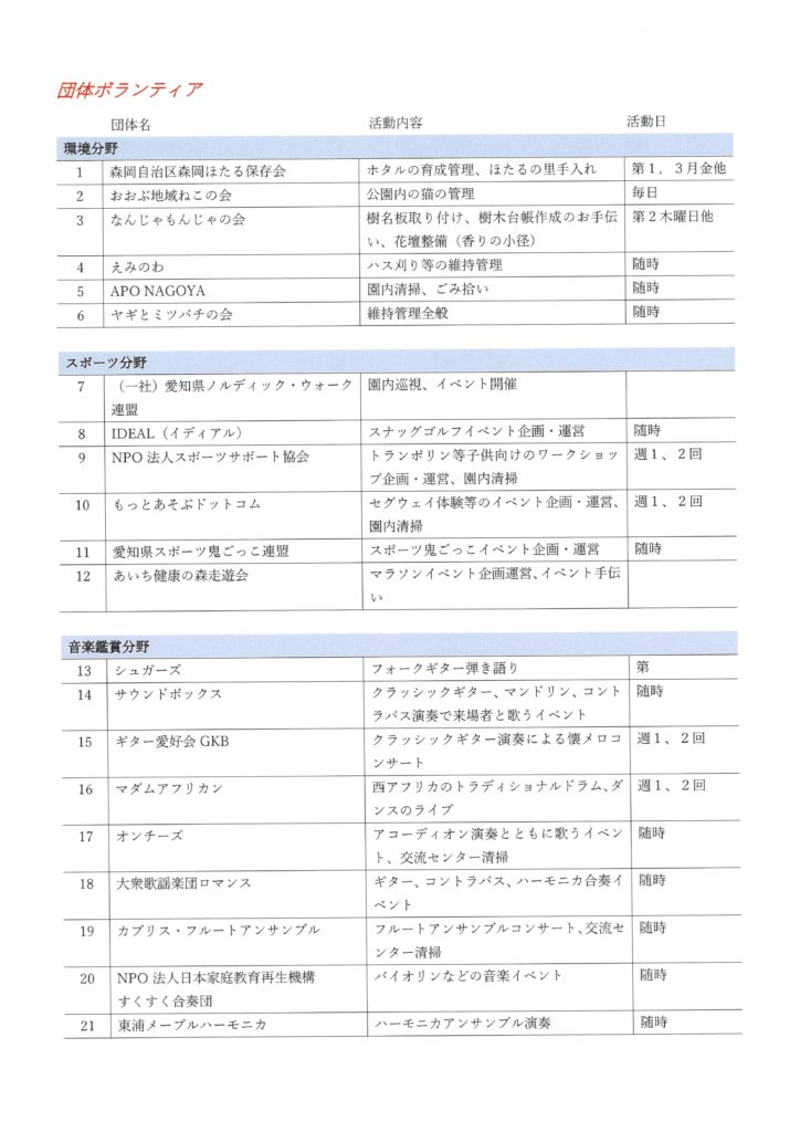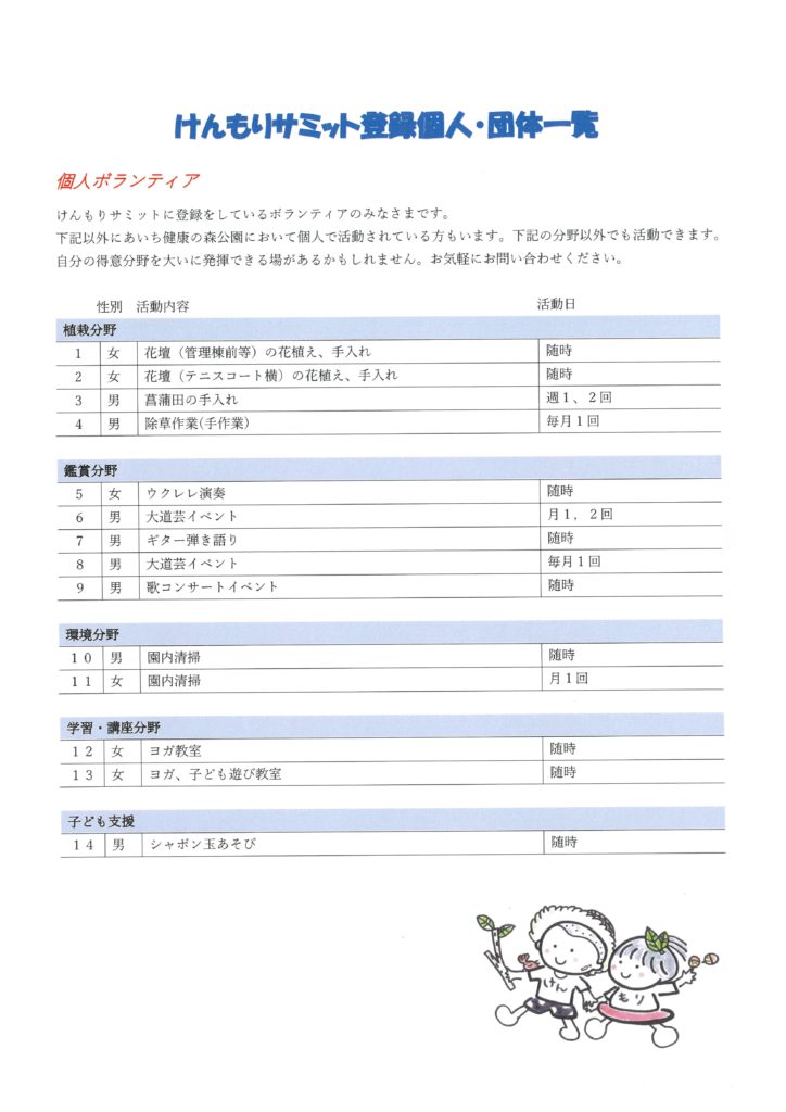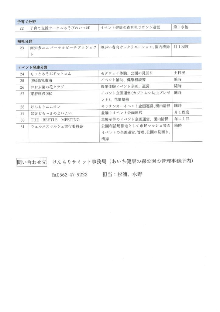 けんもりサミット登録個人・団体一覧