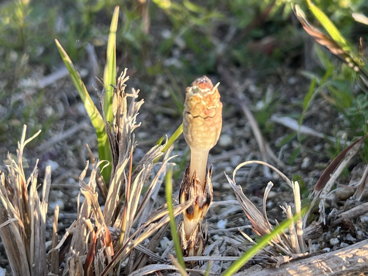 油ヶ淵水辺公園の土手にもつくしが頭を出し始めました。