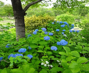 園内ではアジサイがちらほら咲き始めました。(2017年6月18日の様子)