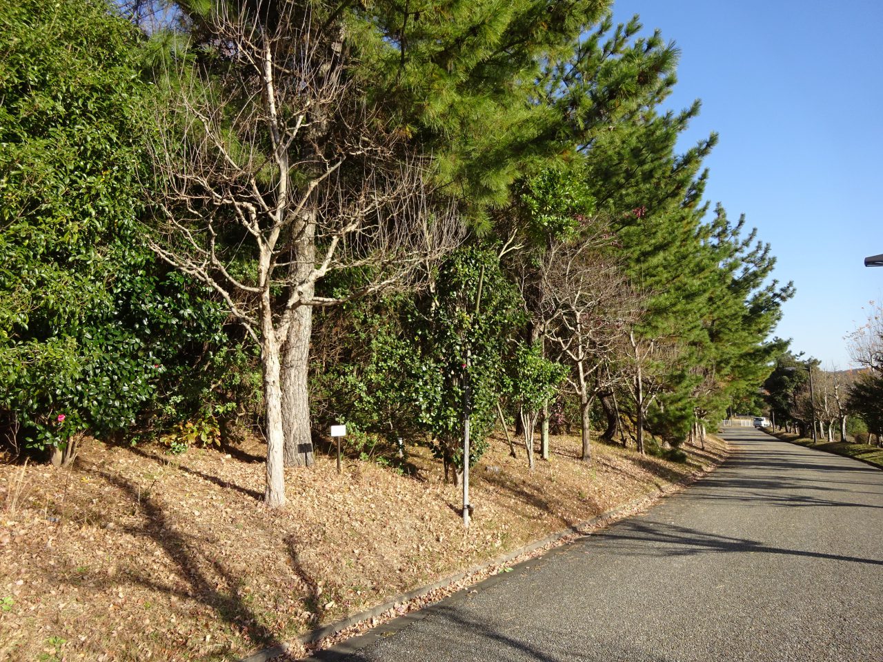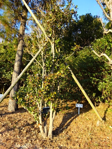 こどものひろば園路沿いの「オトメツバキ」が今年も可愛らしい花を咲かせていました。