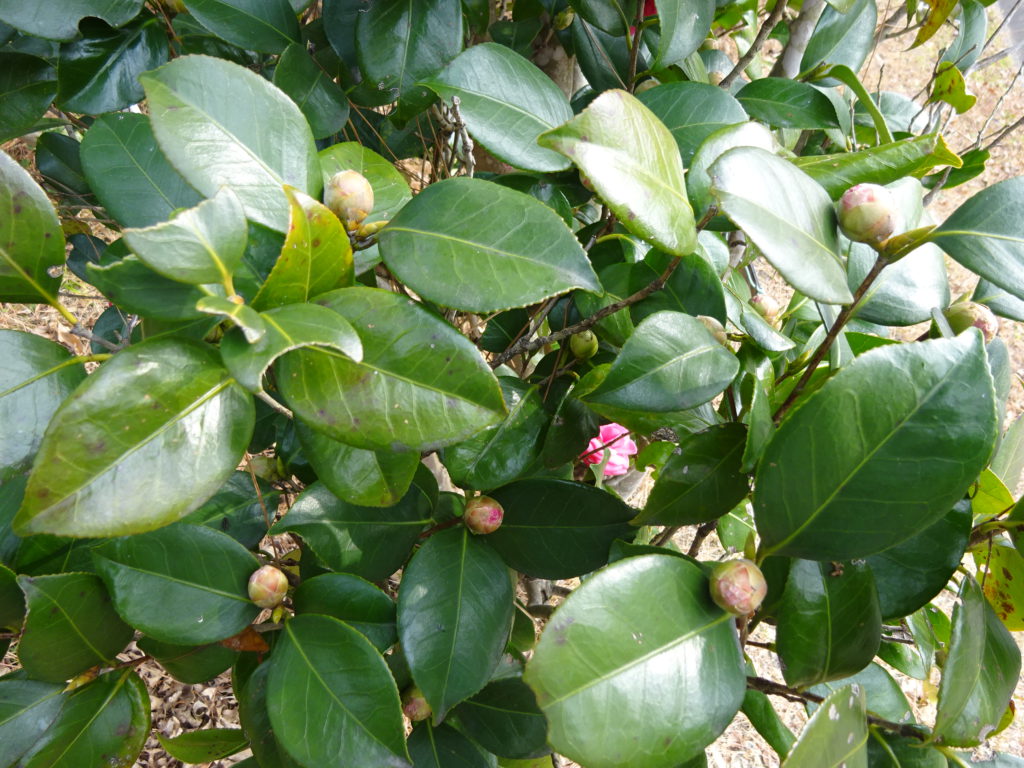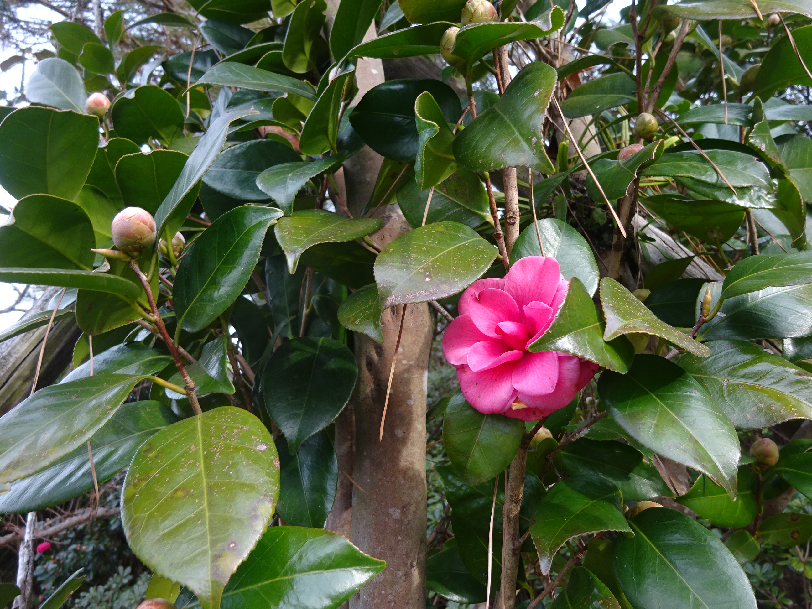 大観覧車から水のエリアにかけての通り道で、まだオトメツバキの花を見ることができます。
