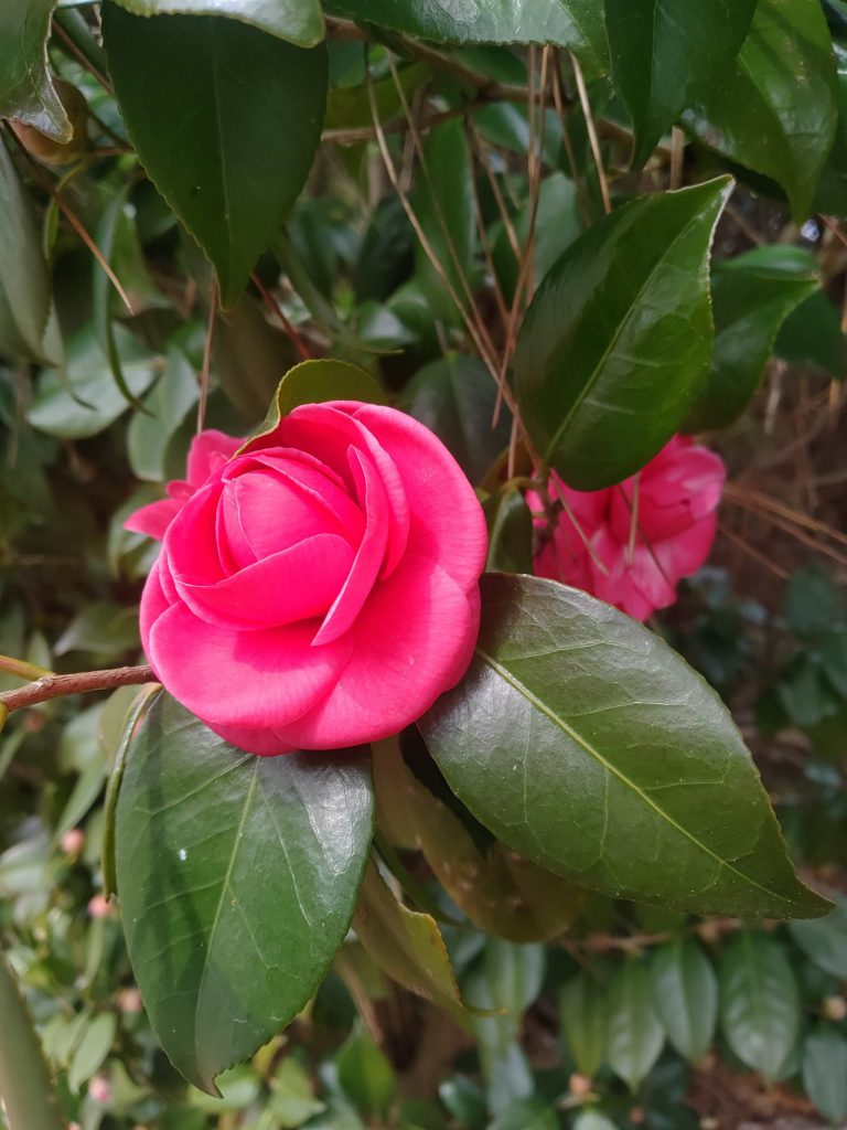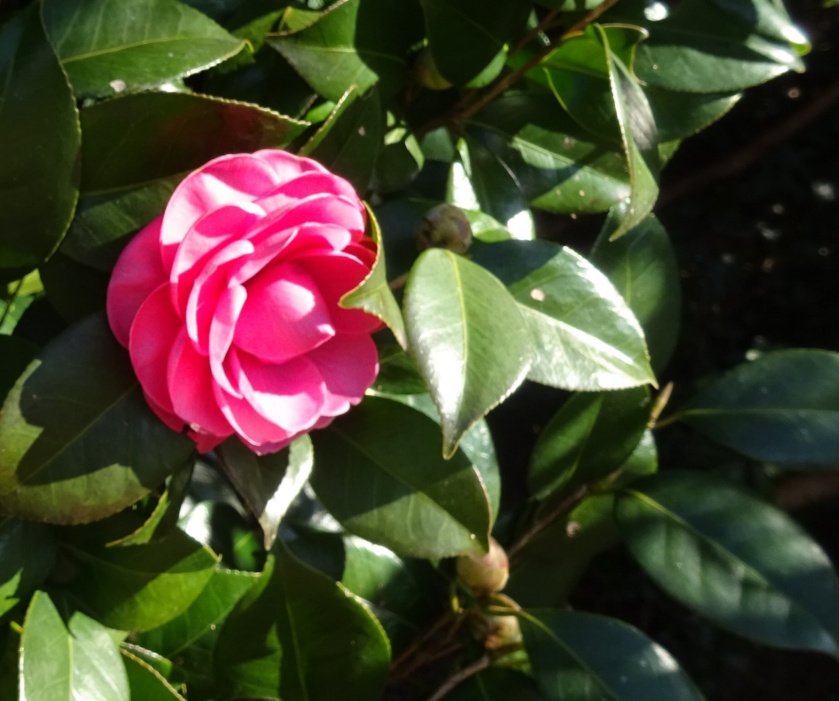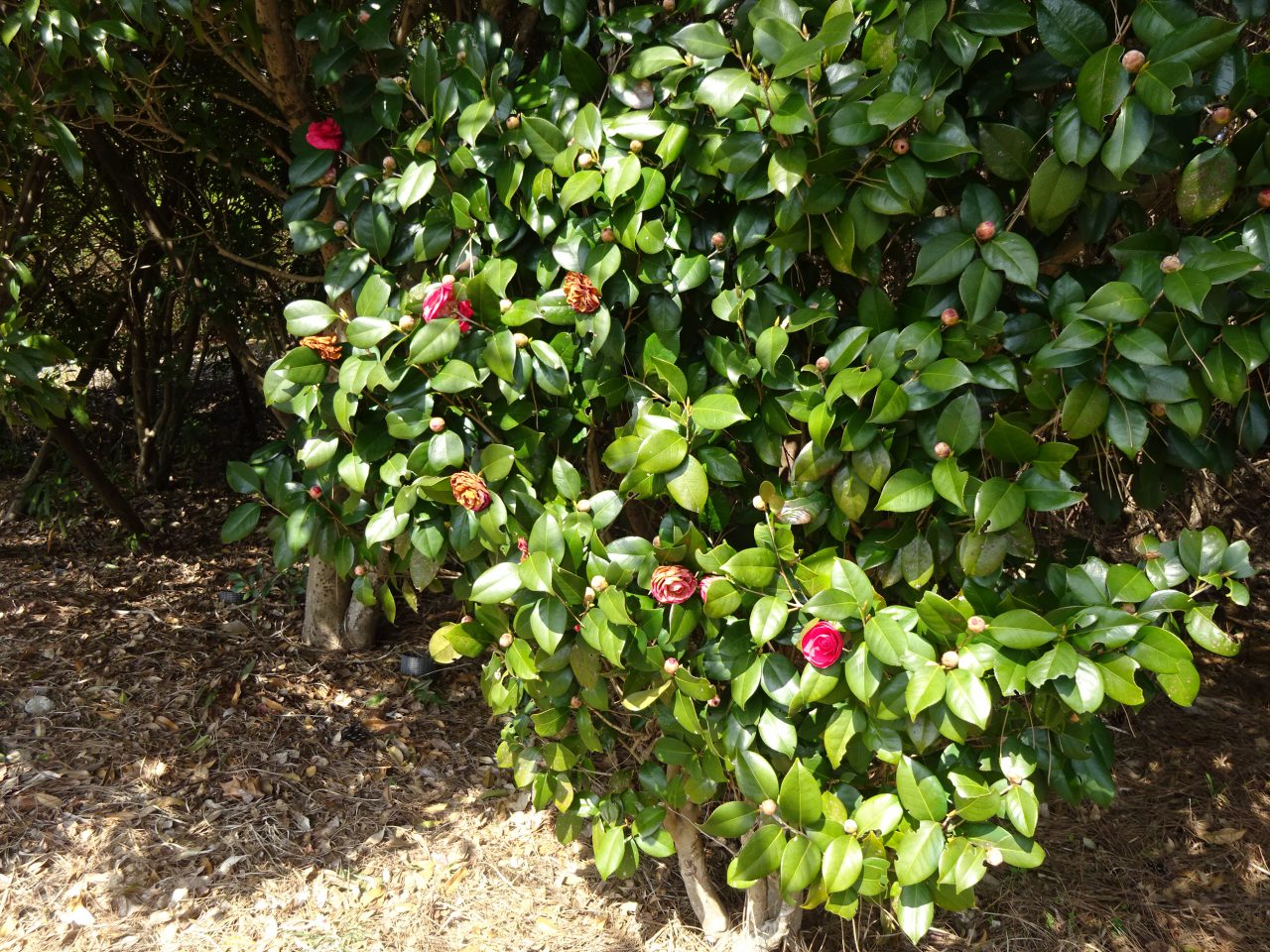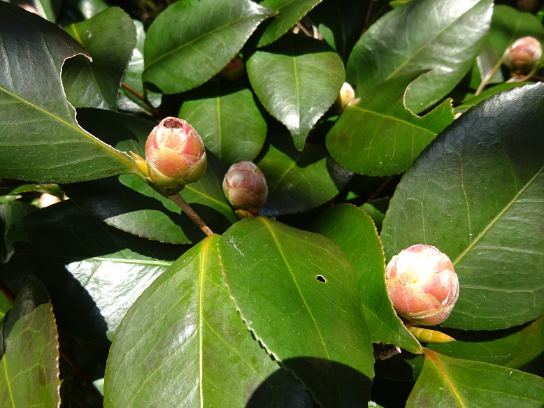 以前はたったひとつしか咲いていなかったオトメツバキ。だいぶ花を咲かせてきました。
