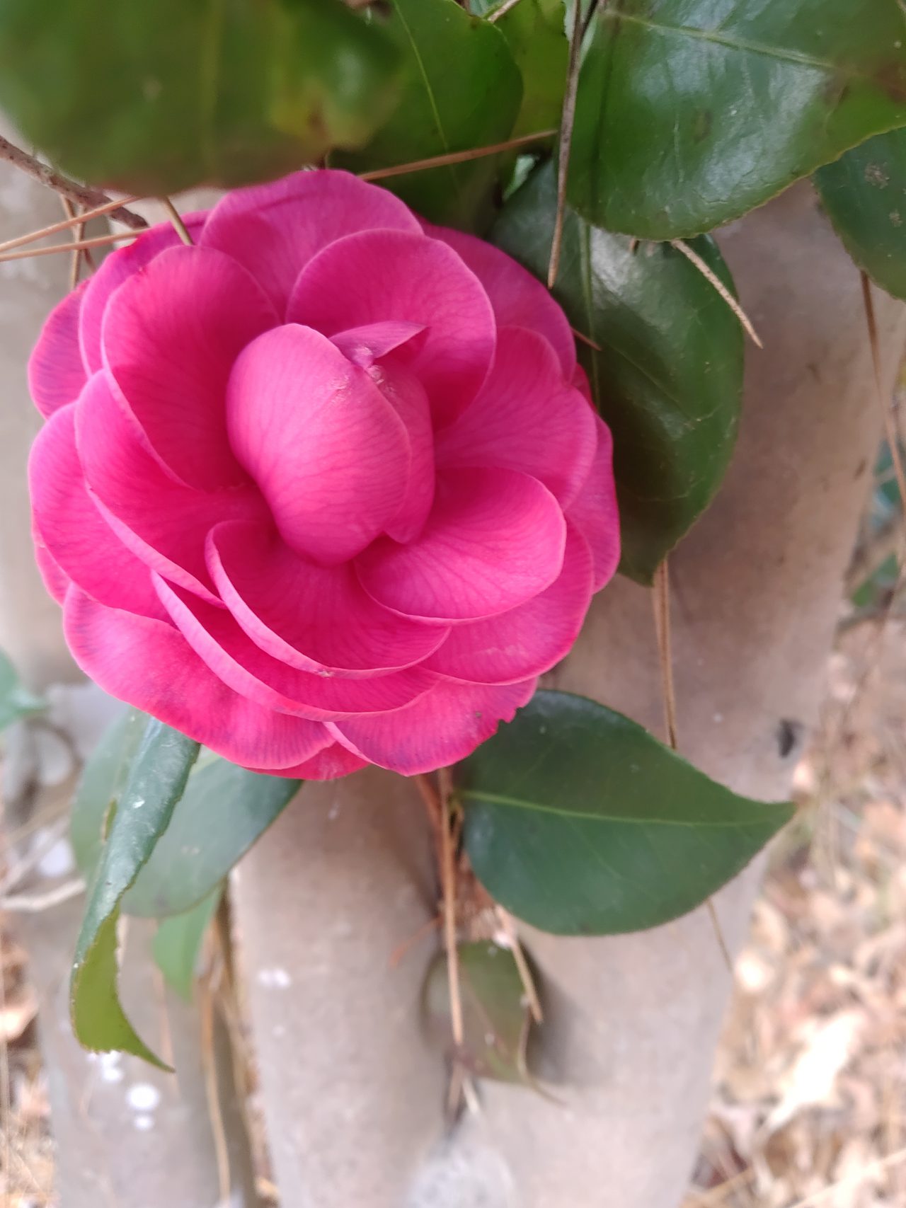 黄色のおしべが見えないこの花。つばきは和、こちらはモダンな洋といったところでしょうか?