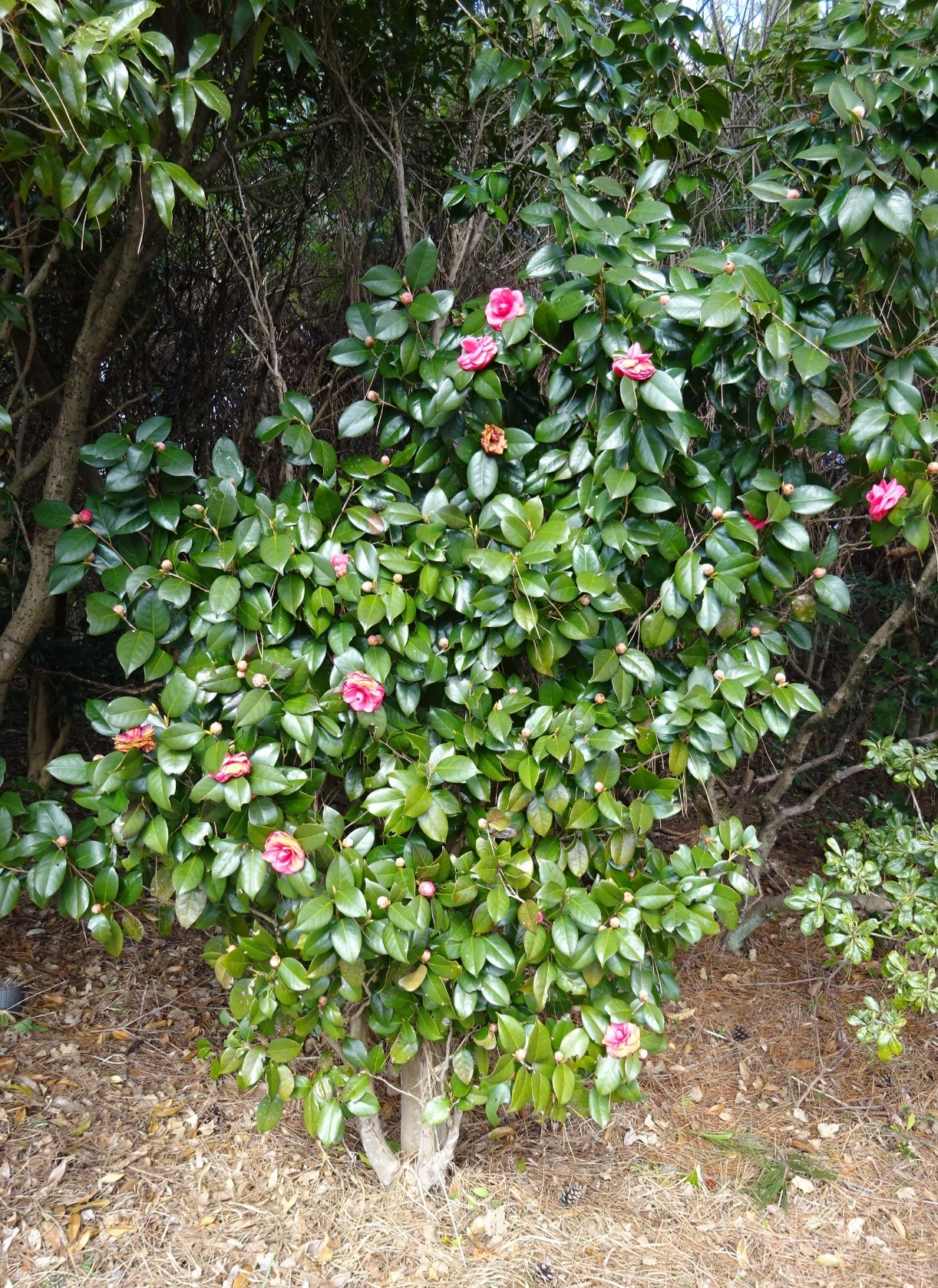 大花壇のオトメツバキも、どんどん花を咲かせています。