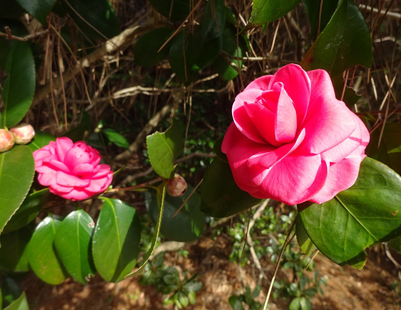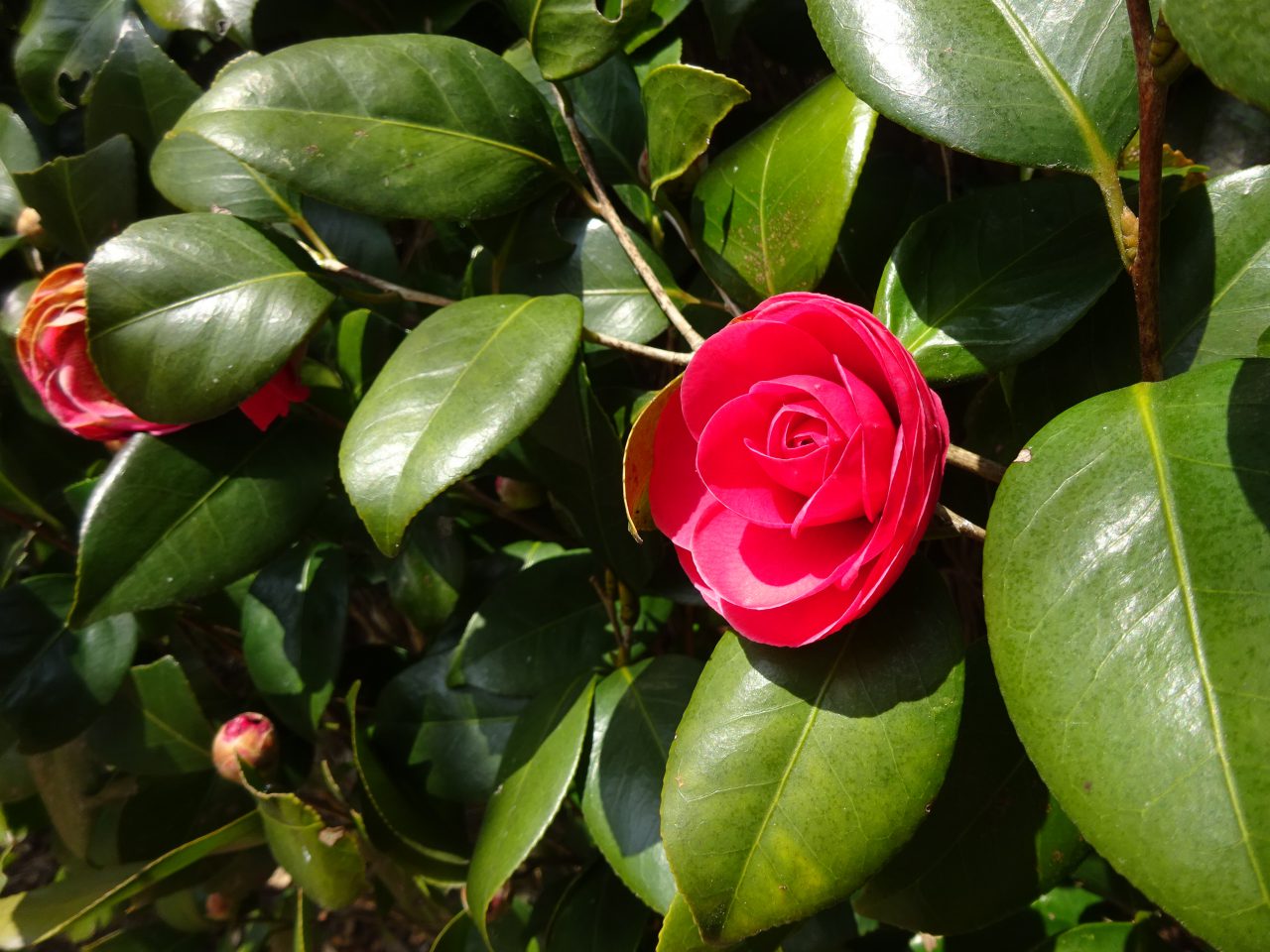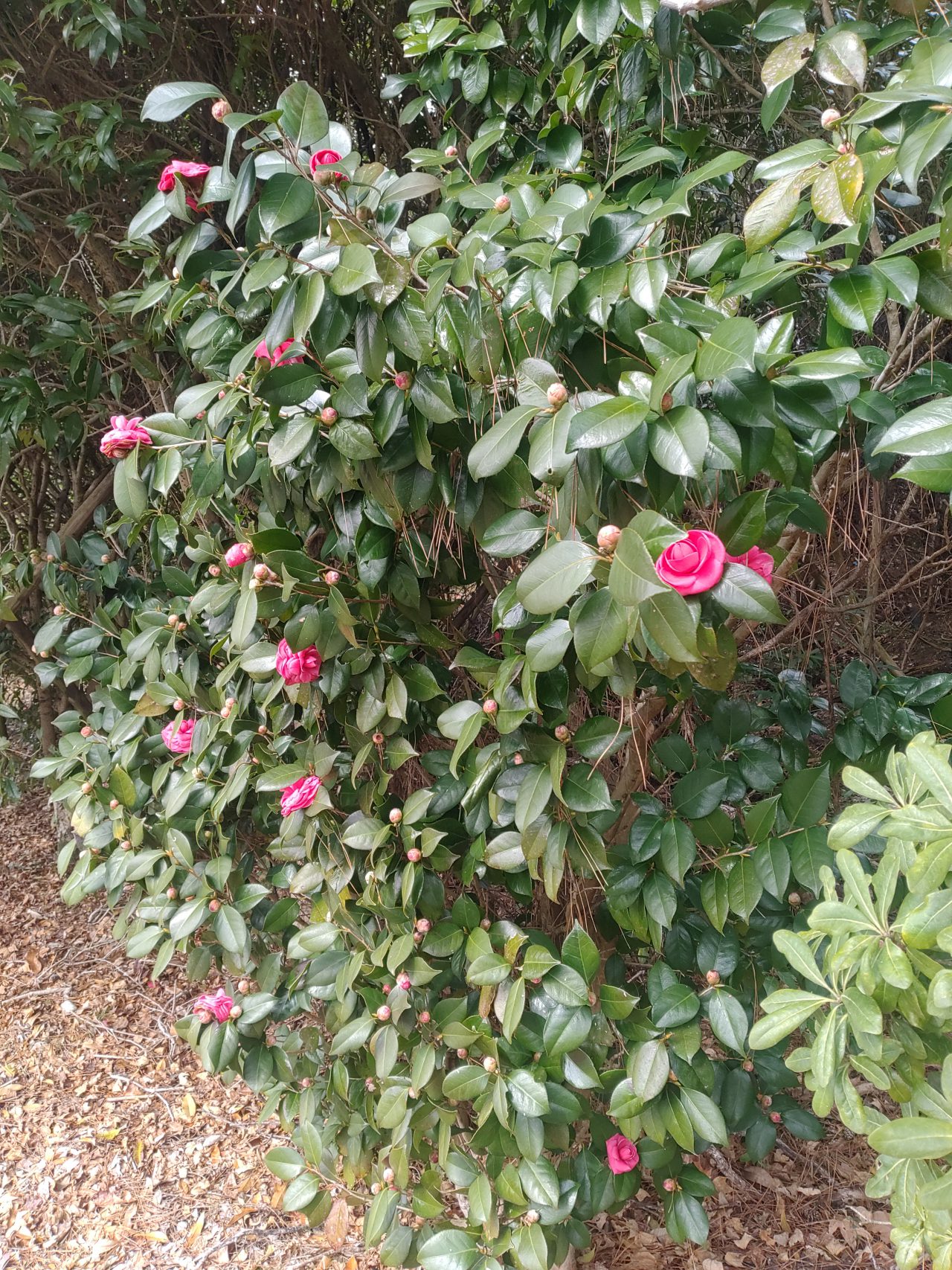 以前はたったひとつしか咲いていなかったオトメツバキ。だいぶ花を咲かせてきました。