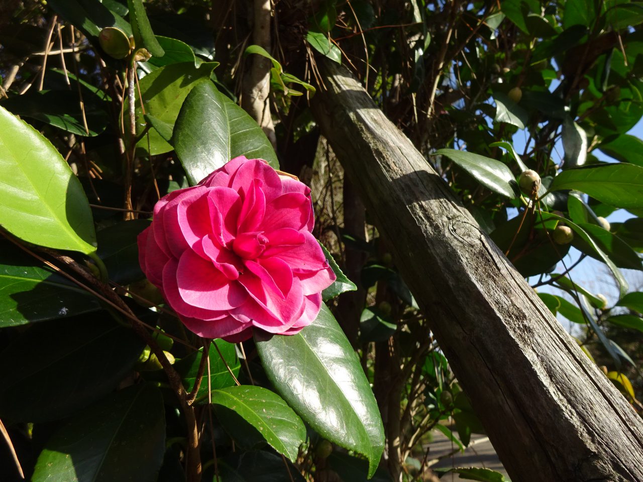 黄色のおしべが見えないこの花。つばきは和、こちらはモダンな洋といったところでしょうか?