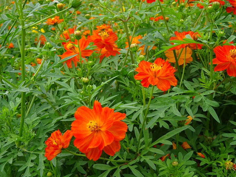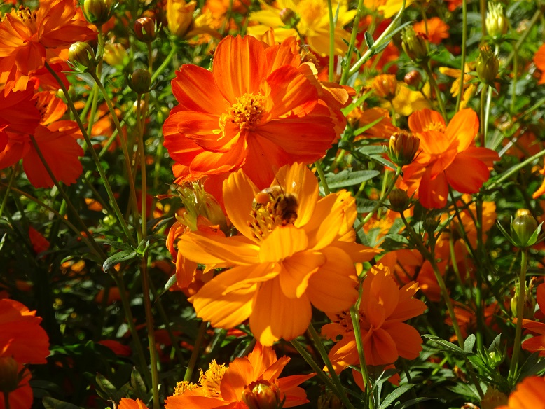 よいお天気が続いています。キバナコスモスたちも満開が続いています。青い空に、オレンジが映えますね。