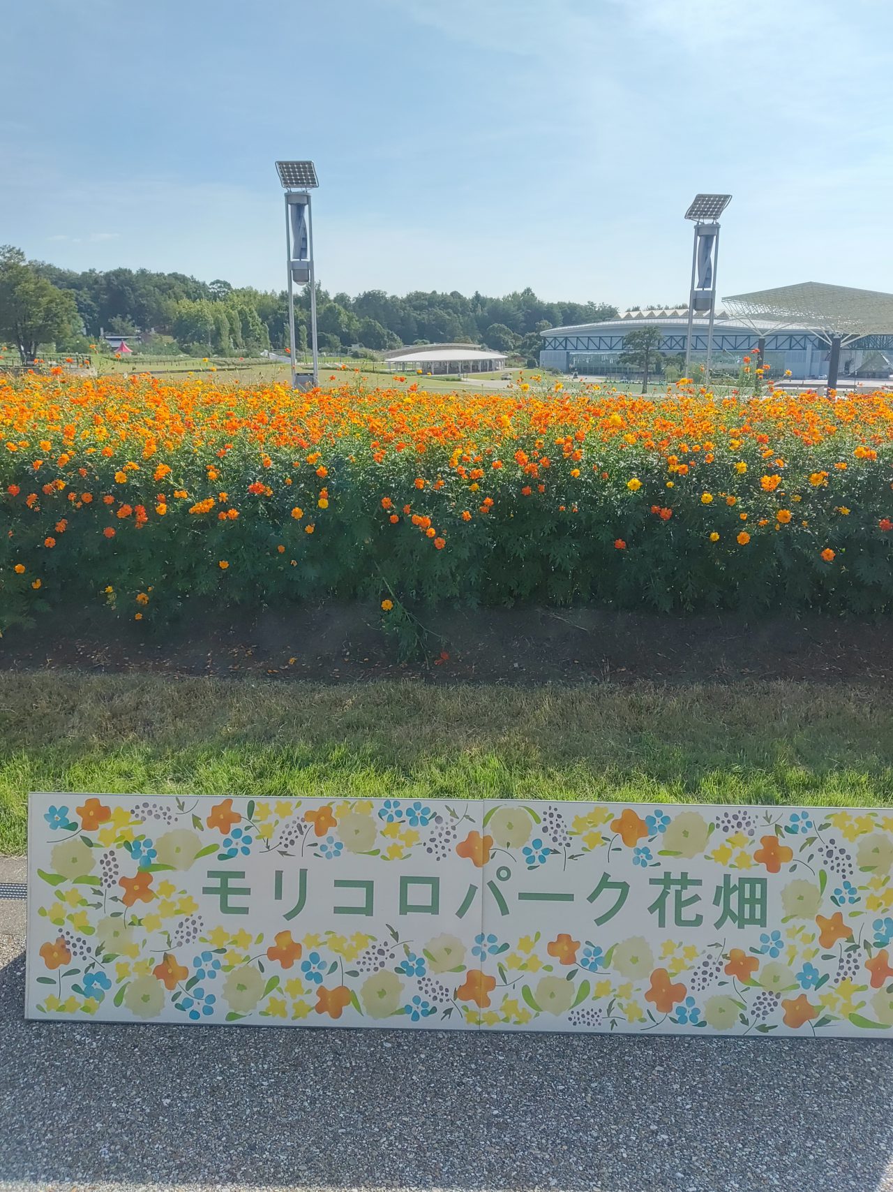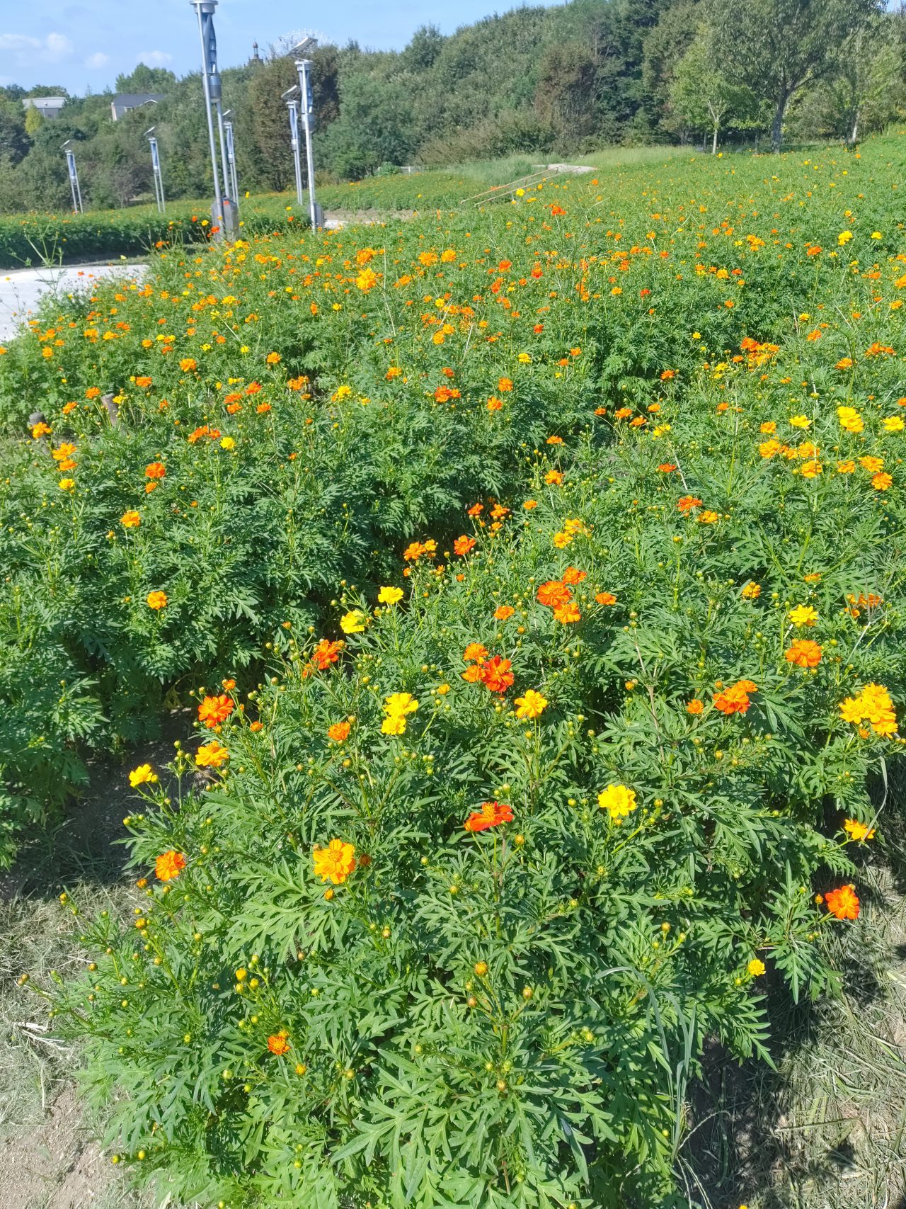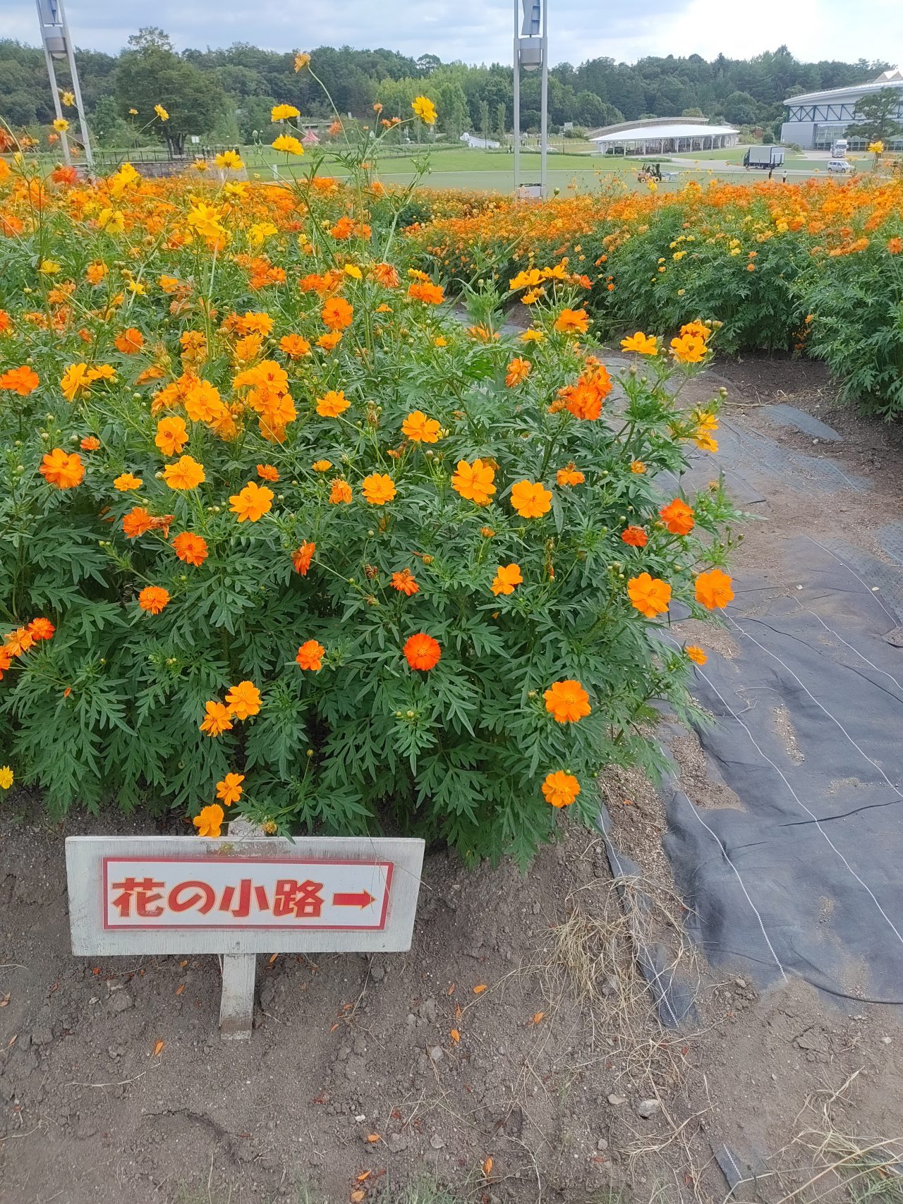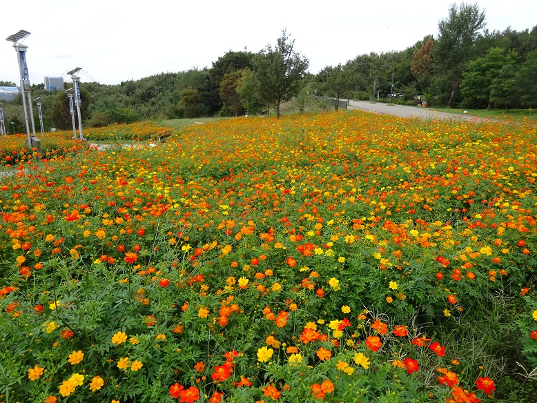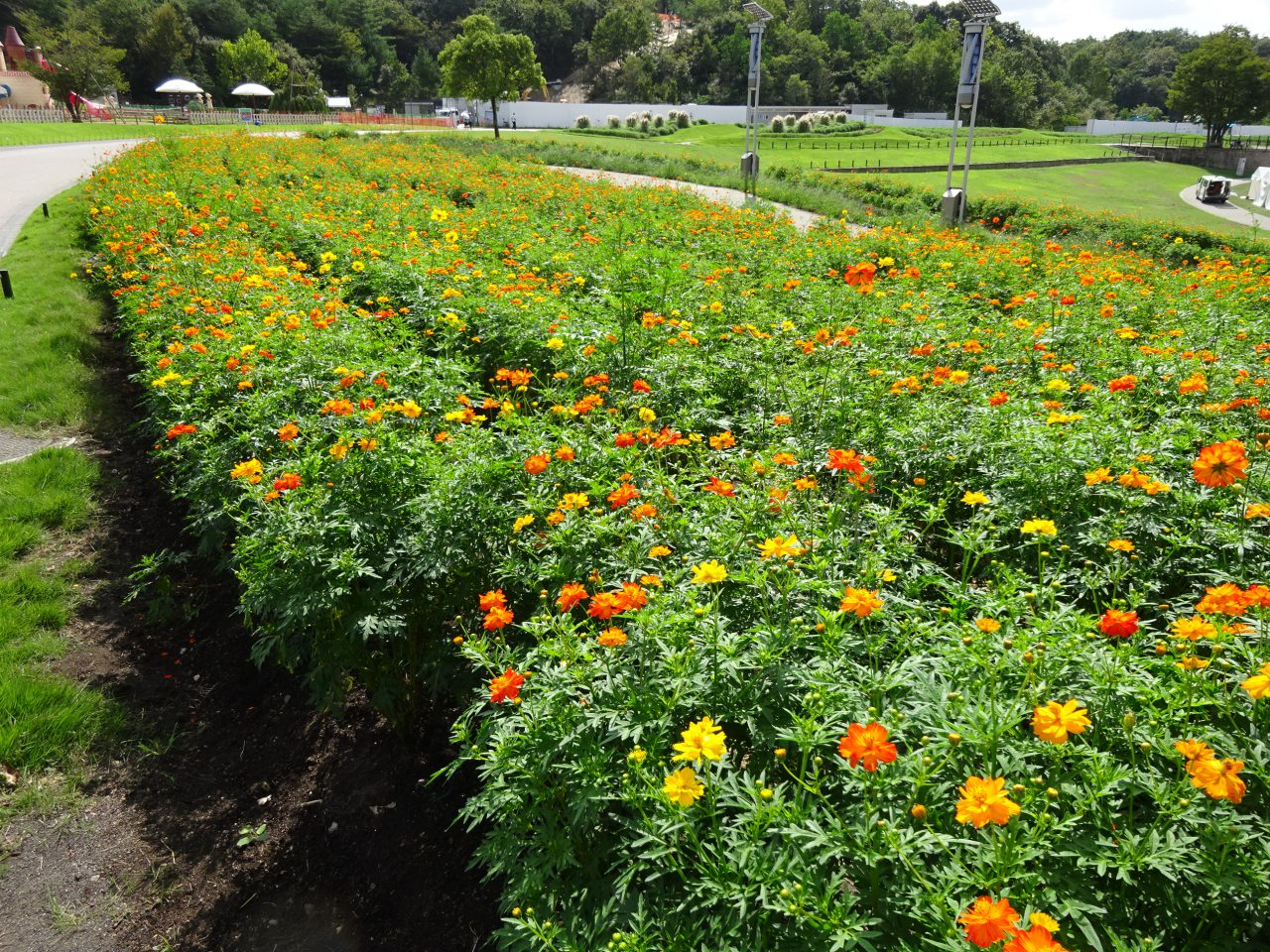 大芝生広場からも、お花畑にいけます。遊歩道の両サイドの花一杯お楽しみくださいね。