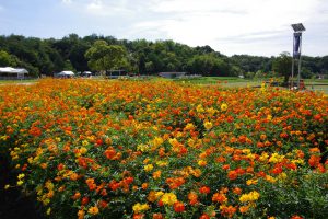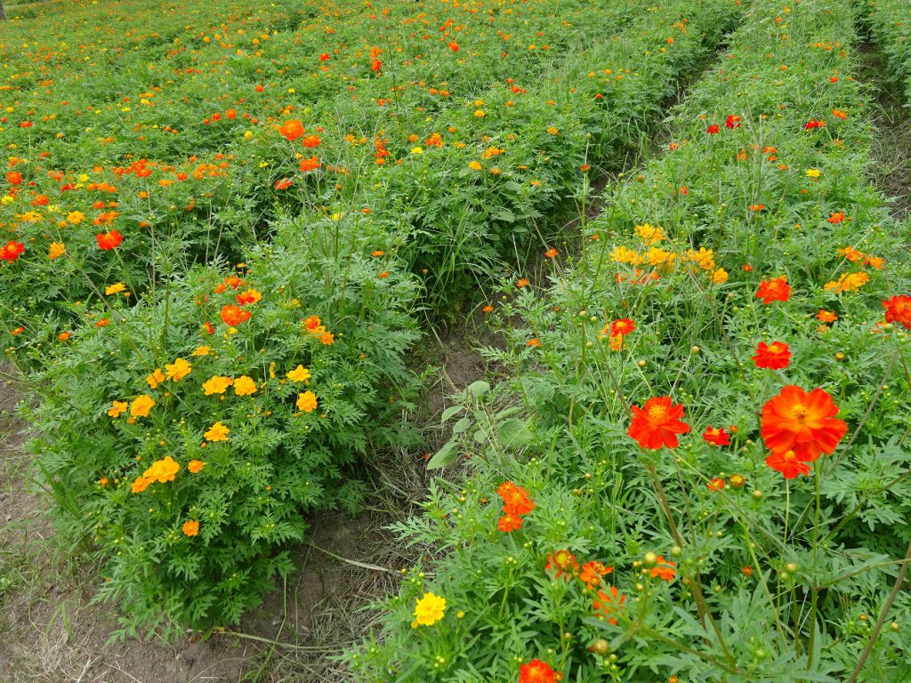 畑一面に花が敷き詰まっていて、ほとんど緑色の部分が見えないです。