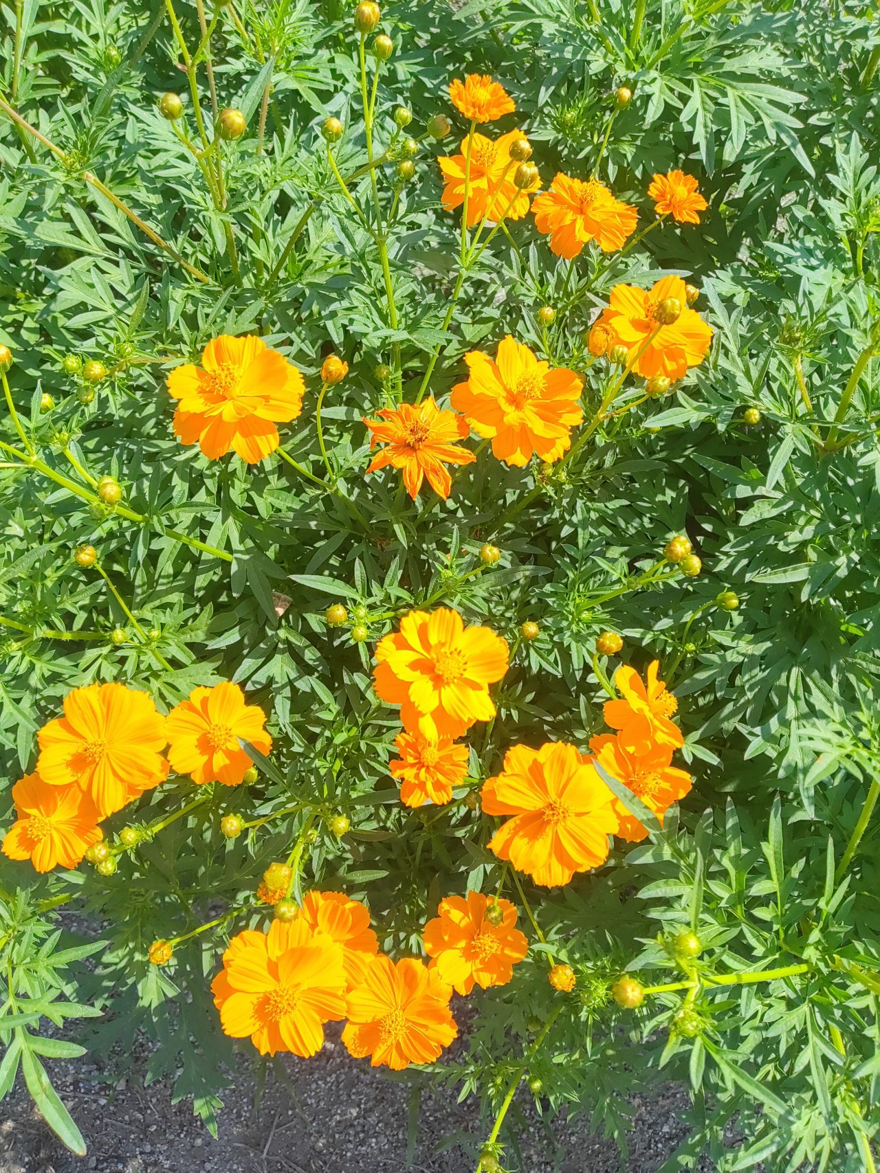 黄色とオレンジの花が沢山咲き緑色の部分が少なくなってきました。