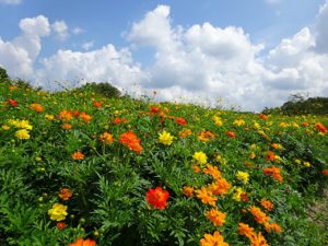 大芝生広場で「キバナコスモス」が見頃を迎えています♪