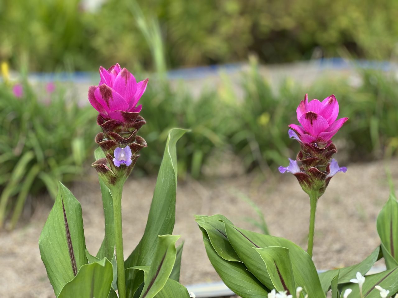水生花園 油ヶ淵側の花壇にクルクマ・シャロームの花が咲きました。