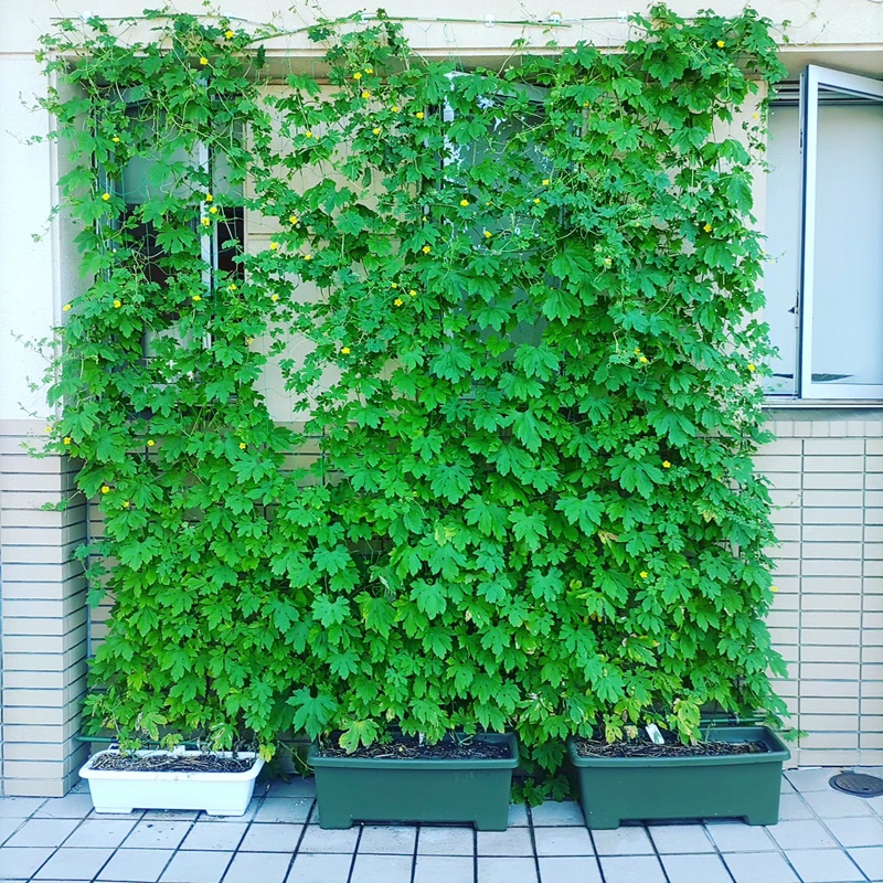 フレッシュパークのグリーンカーテン、ほぼ完成した感じなのかもp(^ ^)q