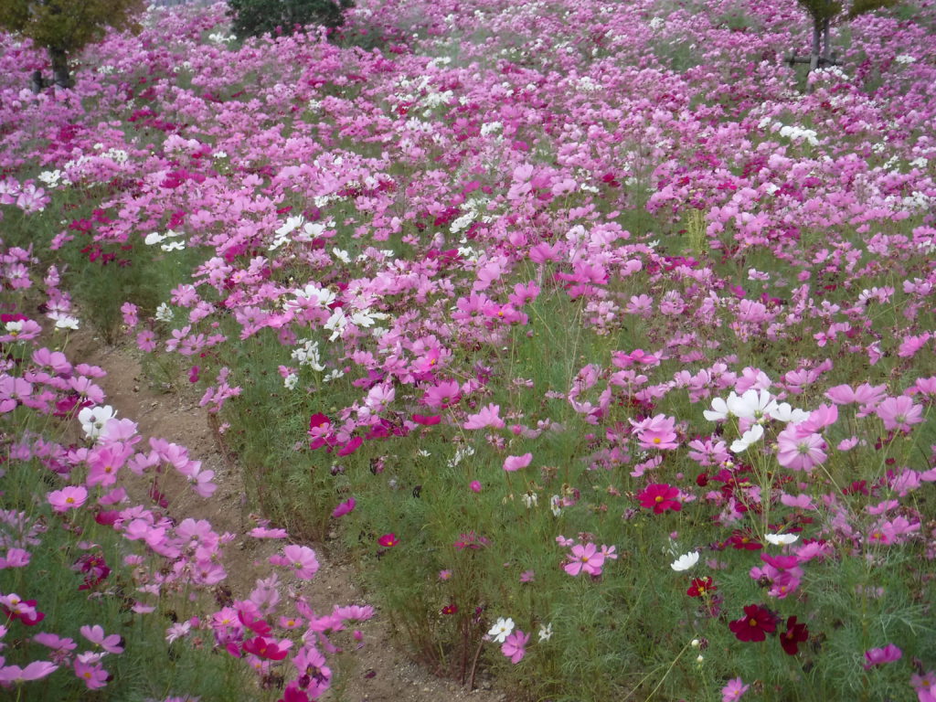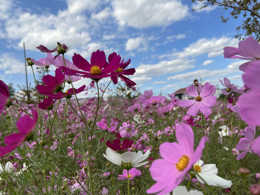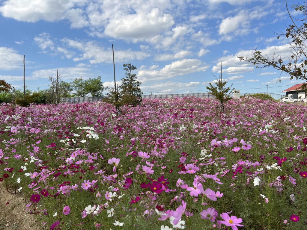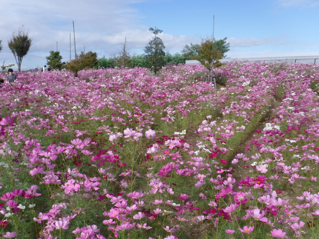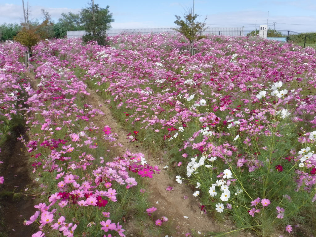 自然ふれあい生態園 コスモス花畑 安城市東端町 2021.10.10の様子】たくさんのお客様にご覧いただき、コスモスもとても喜んでいるようです。