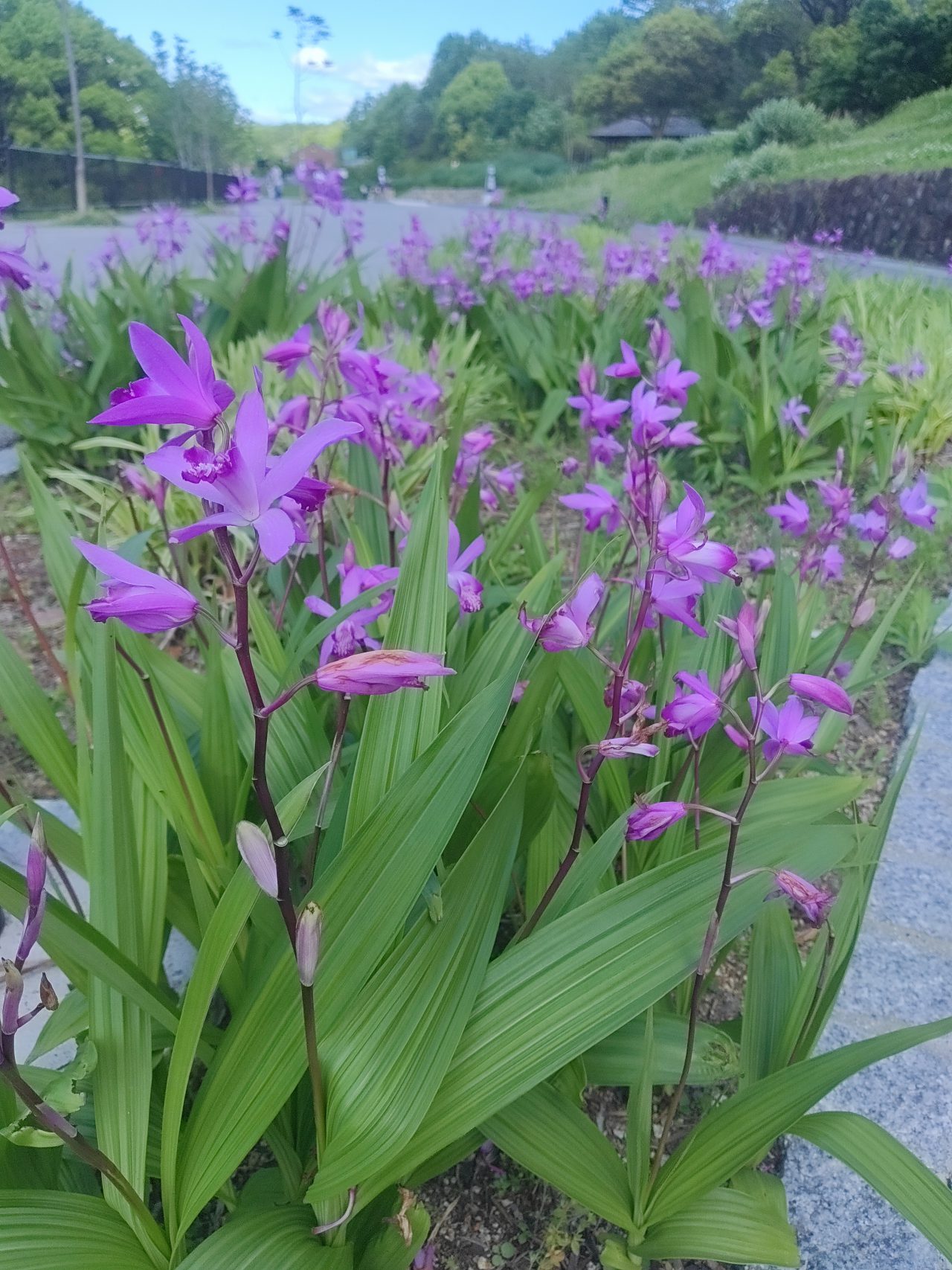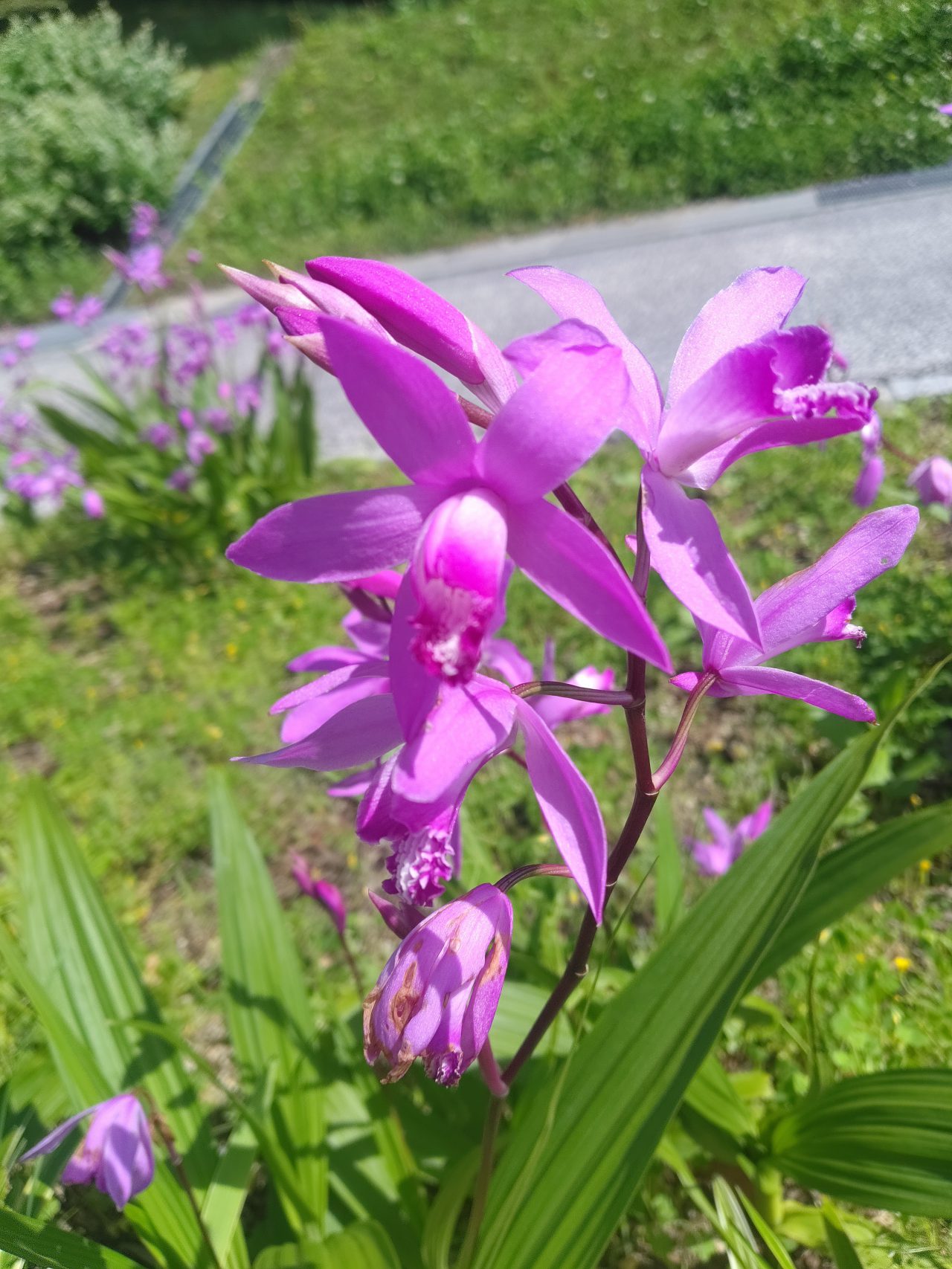 交流センタ-屋上・ジブリ大倉庫バス停から西口広場付近にてシラン(紫蘭)が咲いています。