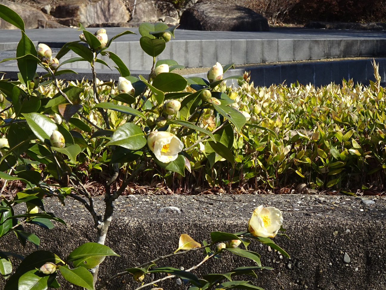 この季節はサザンカやツバキが園内のあちらこちらに。