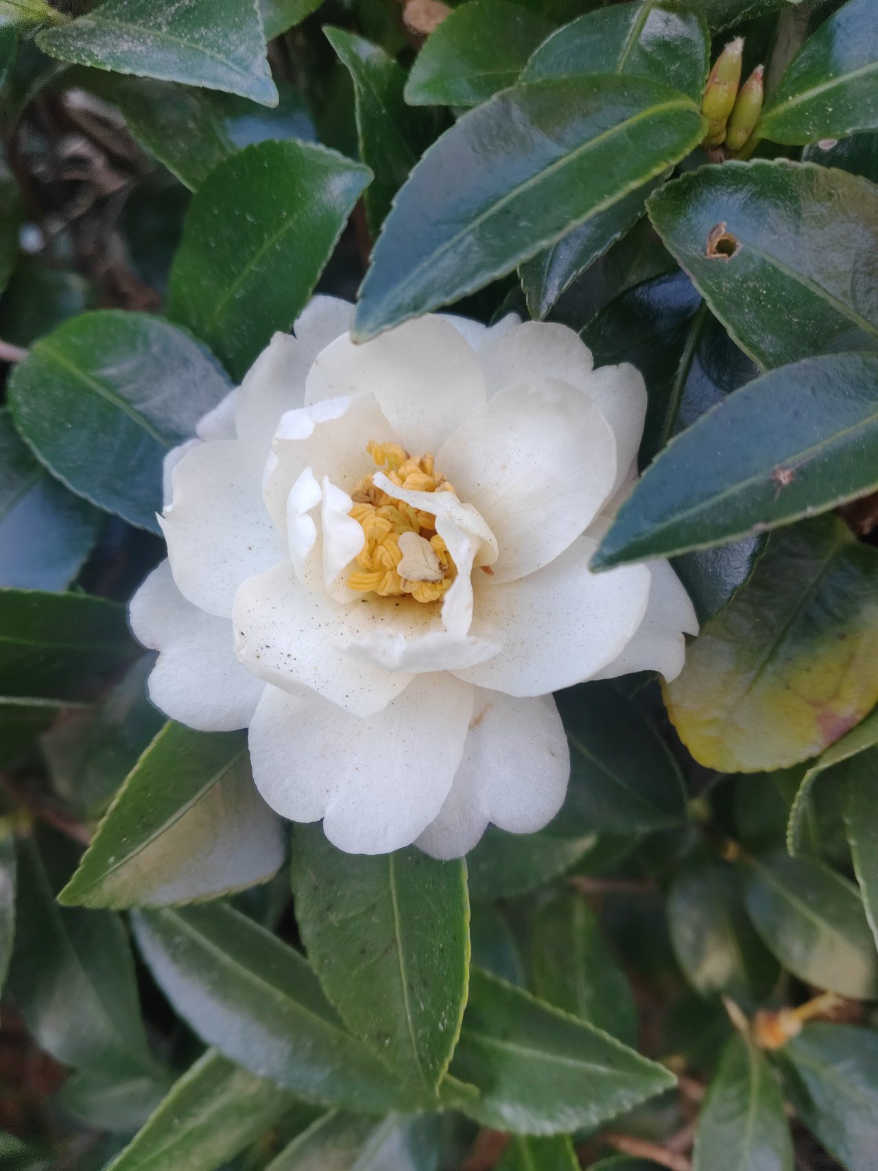 日本庭園にて白い椿が咲き始めているのを見つけました♪