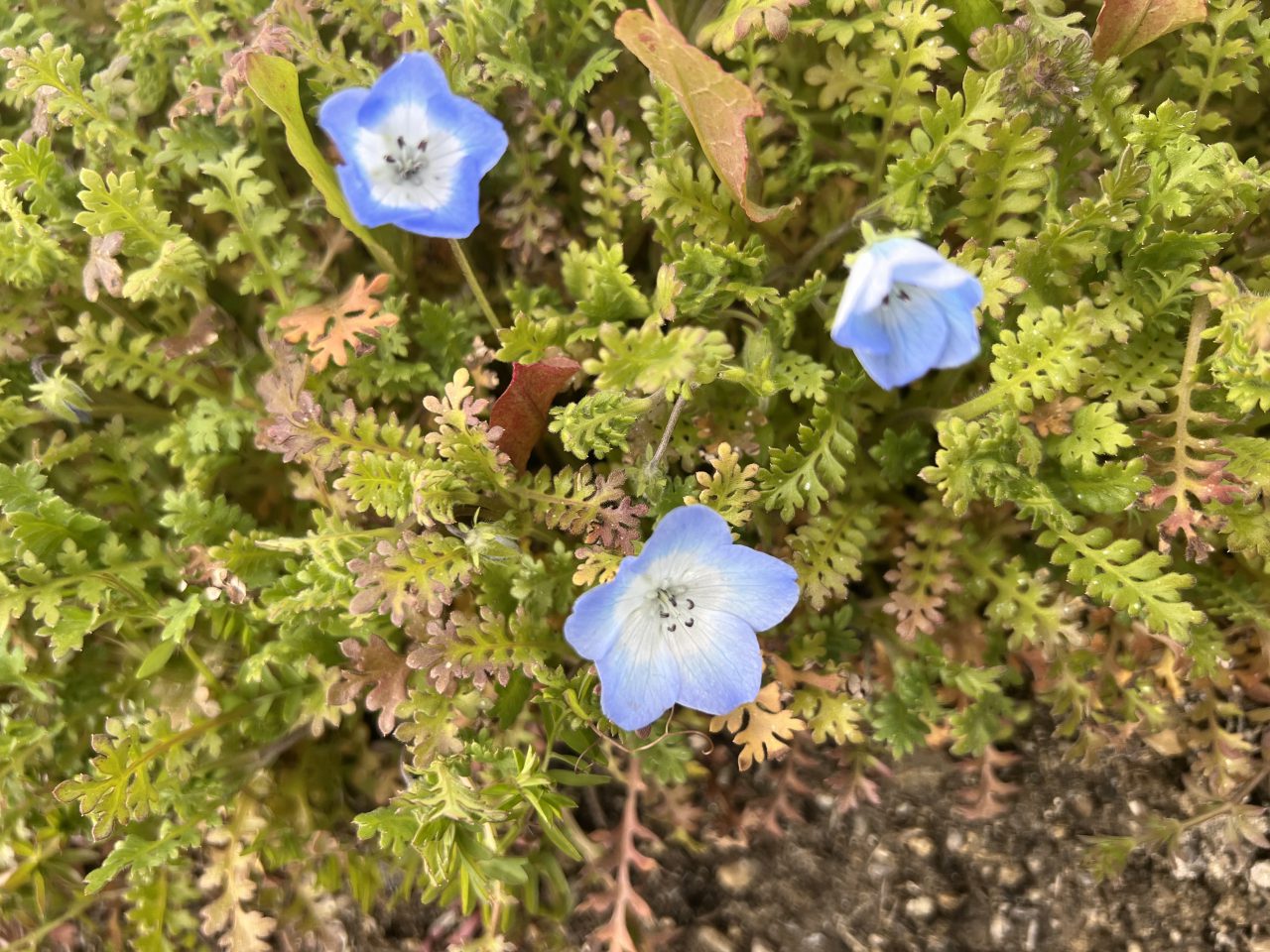 3月21日のネモフィラの状況です。日当たりの良い所に花が咲き始めました。
