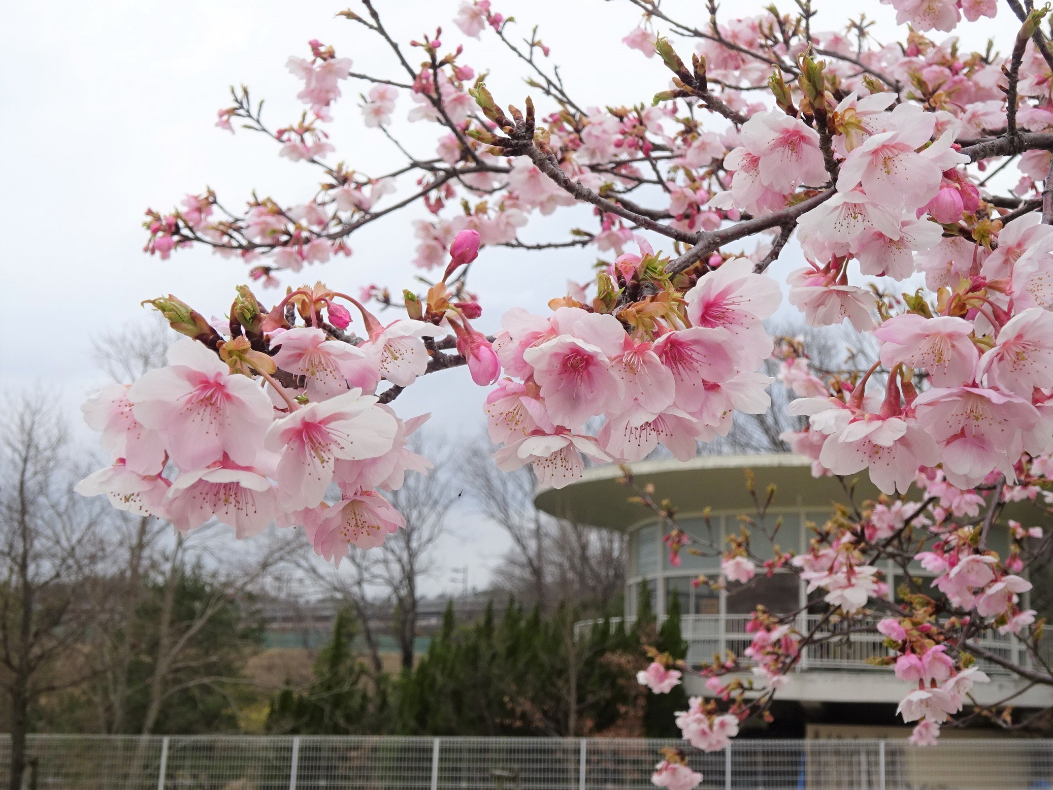 こちらはモリコロパークで一番に見頃を迎えた「ヒガンザクラ」
